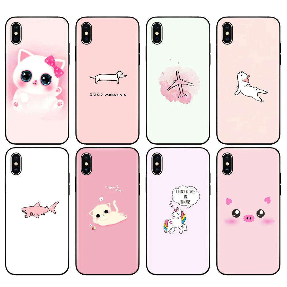 Черный чехол из ТПУ для iphone 5 5s se 6 6s 7 8 plus x 10, силиконовый чехол для iphone XR XS 11 pro MAX, casec ute, розовый, кот, собака, рыба