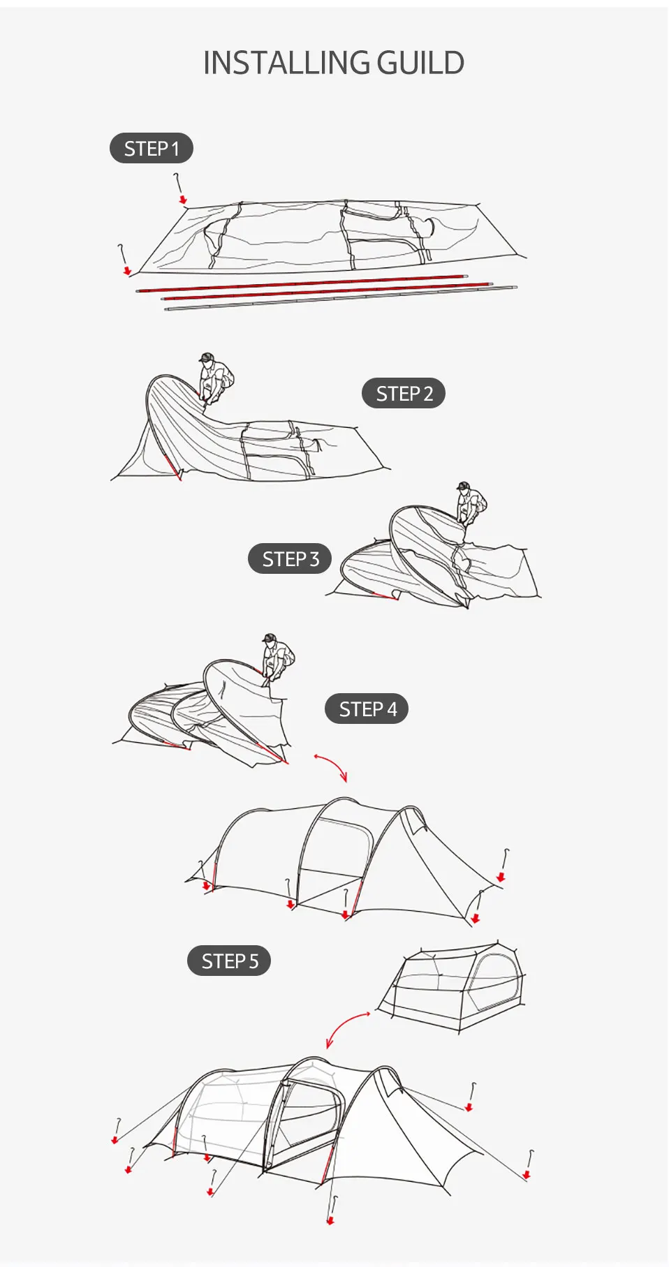 Naturehike Opalus 2 3 4 человека туннельный тент палатка для кемпин...