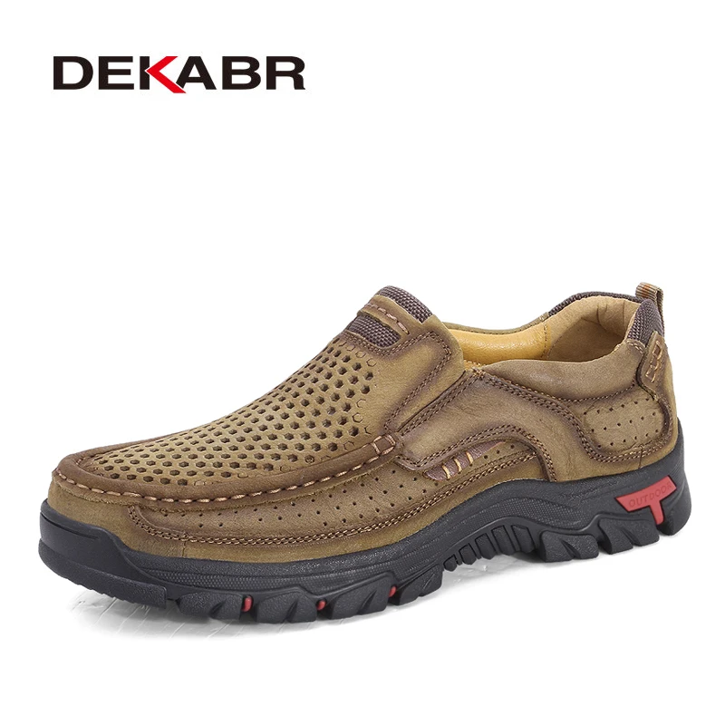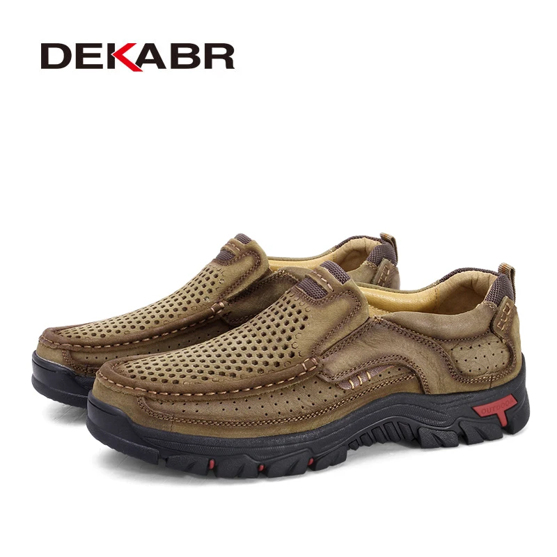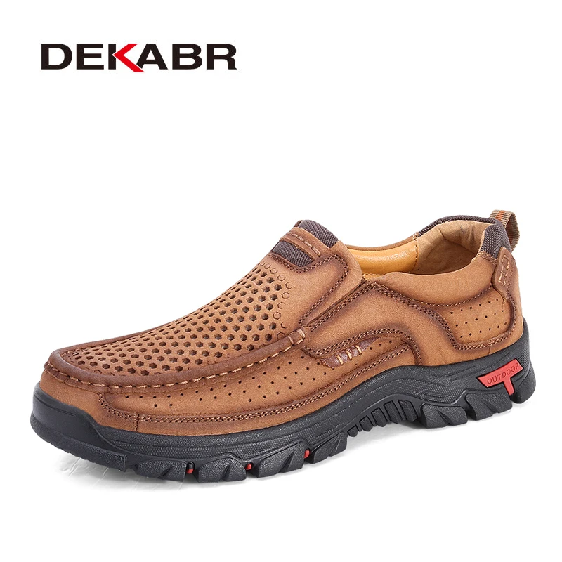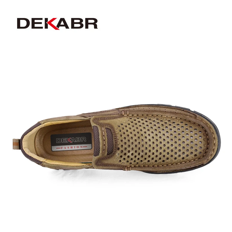 Мужские туфли на плоской подошве DEKABR, коричневые воздухопроницаемые Повседневные Удобные ботинки из натуральной бычьей кожи, лето 2022