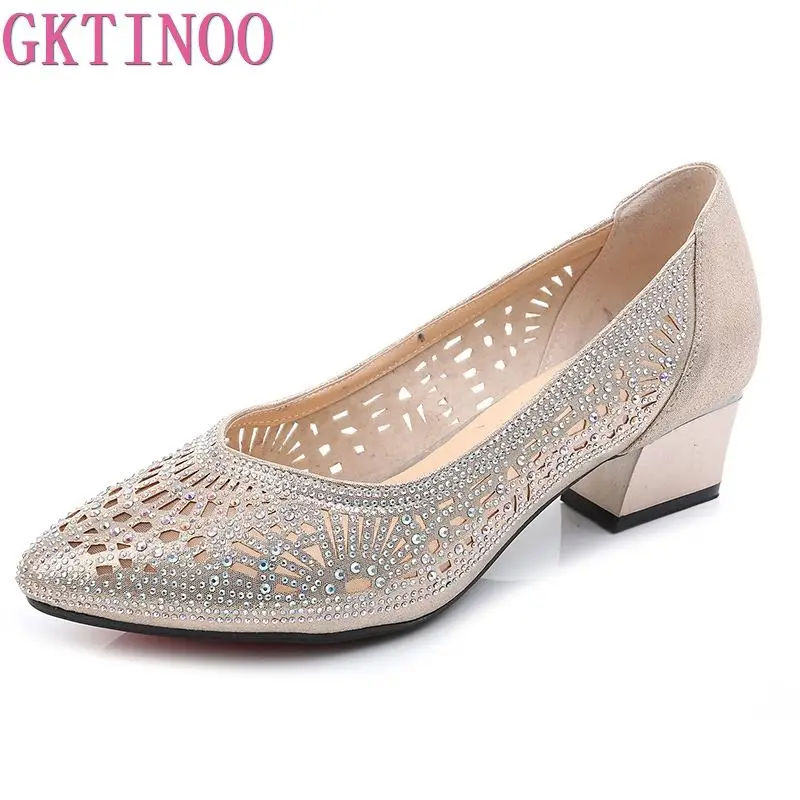 GKTINOOновинка 2022 года; Модные летние туфли-лодочки с вырезами; Женская повседневная обувь со стразами; Tenis Feminino; Обувь из натуральной кожи на высоком каблуке
