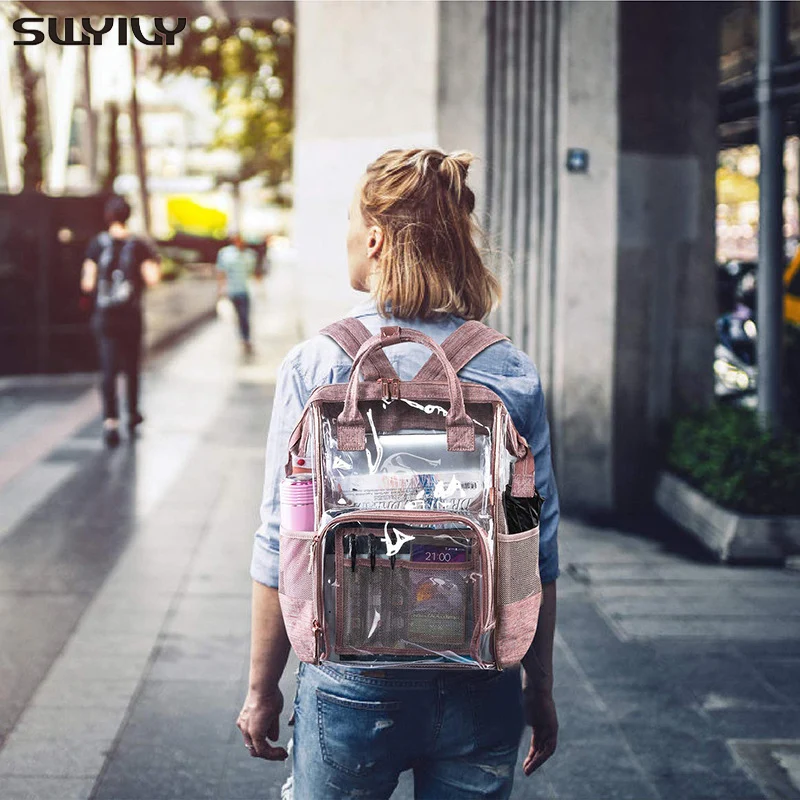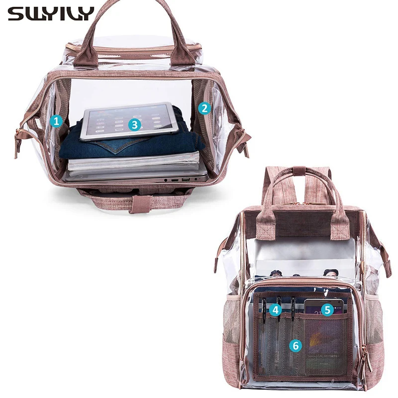 Рюкзак SWYIVY для женщин, прозрачный рюкзак из ПВХ с маленькими сумками, новинка 2019, Женский школьный рюкзак на плечо, вместительный рюкзак для женщин