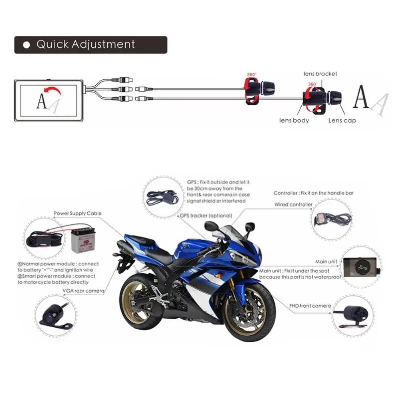 Видеорегистратор для мотоцикла SE300600, 1080P, с G-датчиком