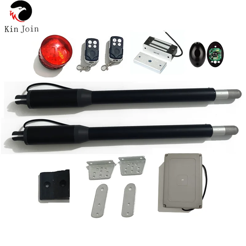 Комплектация: 1 полный комплект двигателя открывателя распашных ворот 24 В постоянного тока с 1 парой фотоэлементов, 1 лампа