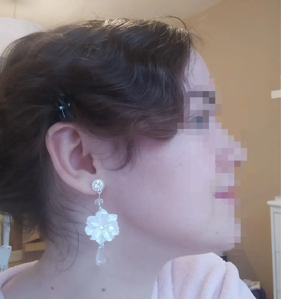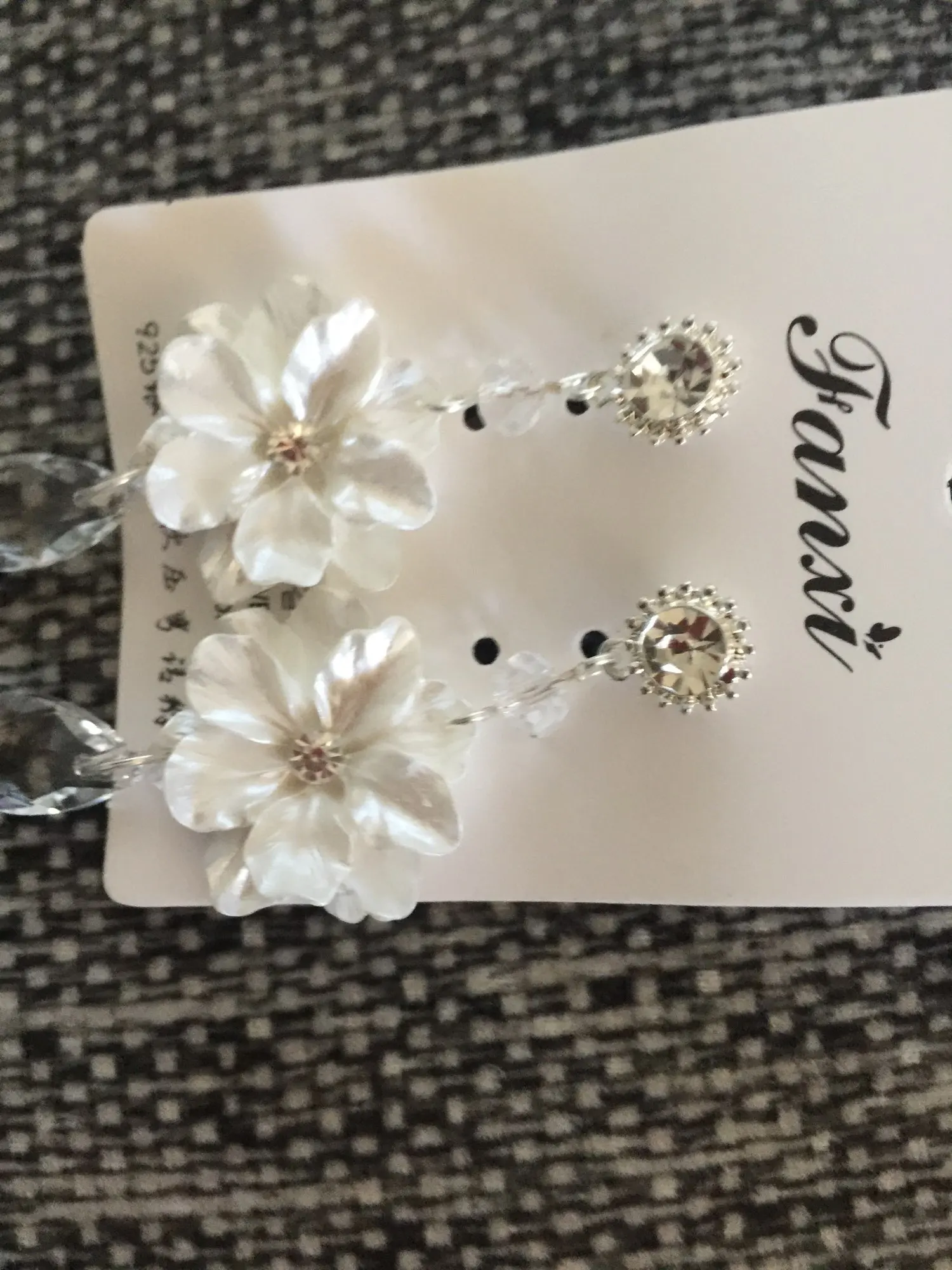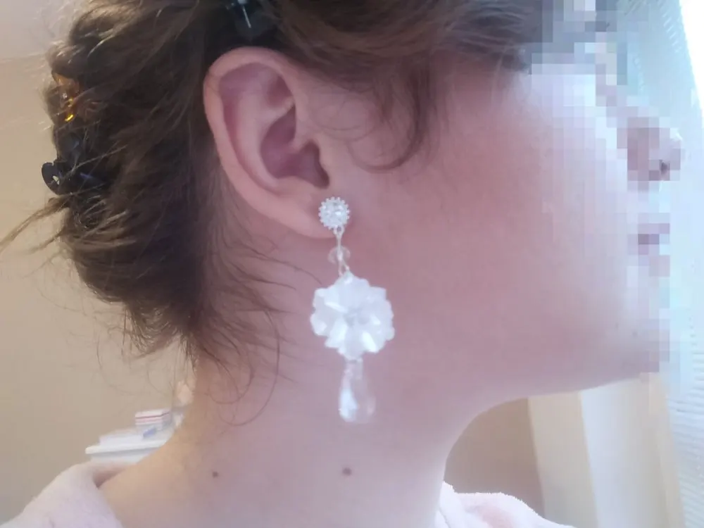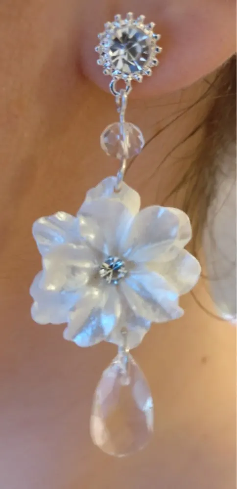 These look just like the picture. I think they did make a mistake on placing the flower upside down on one earring and not the other. Unless that was the intention. Perfect for my backyard wedding!