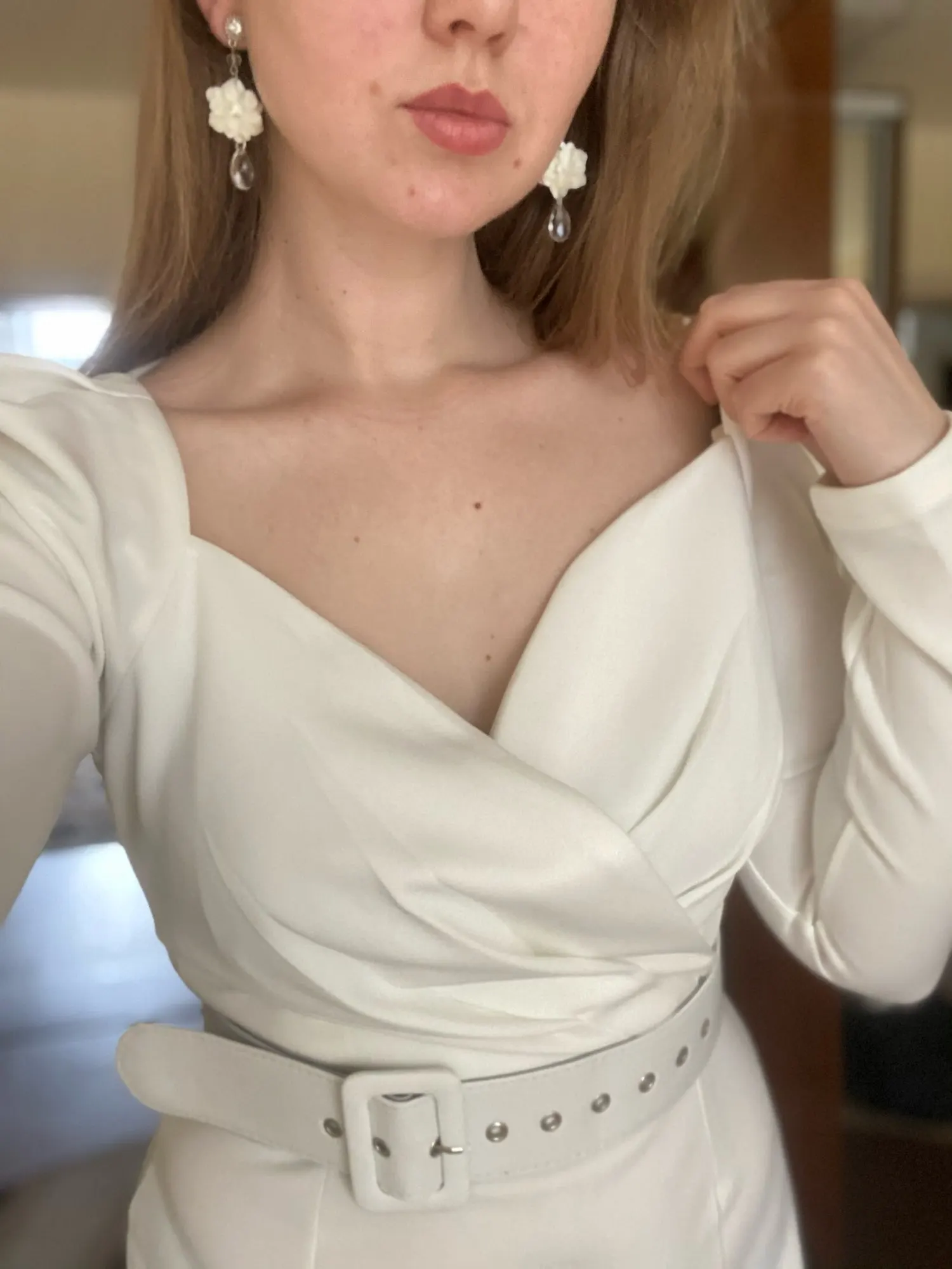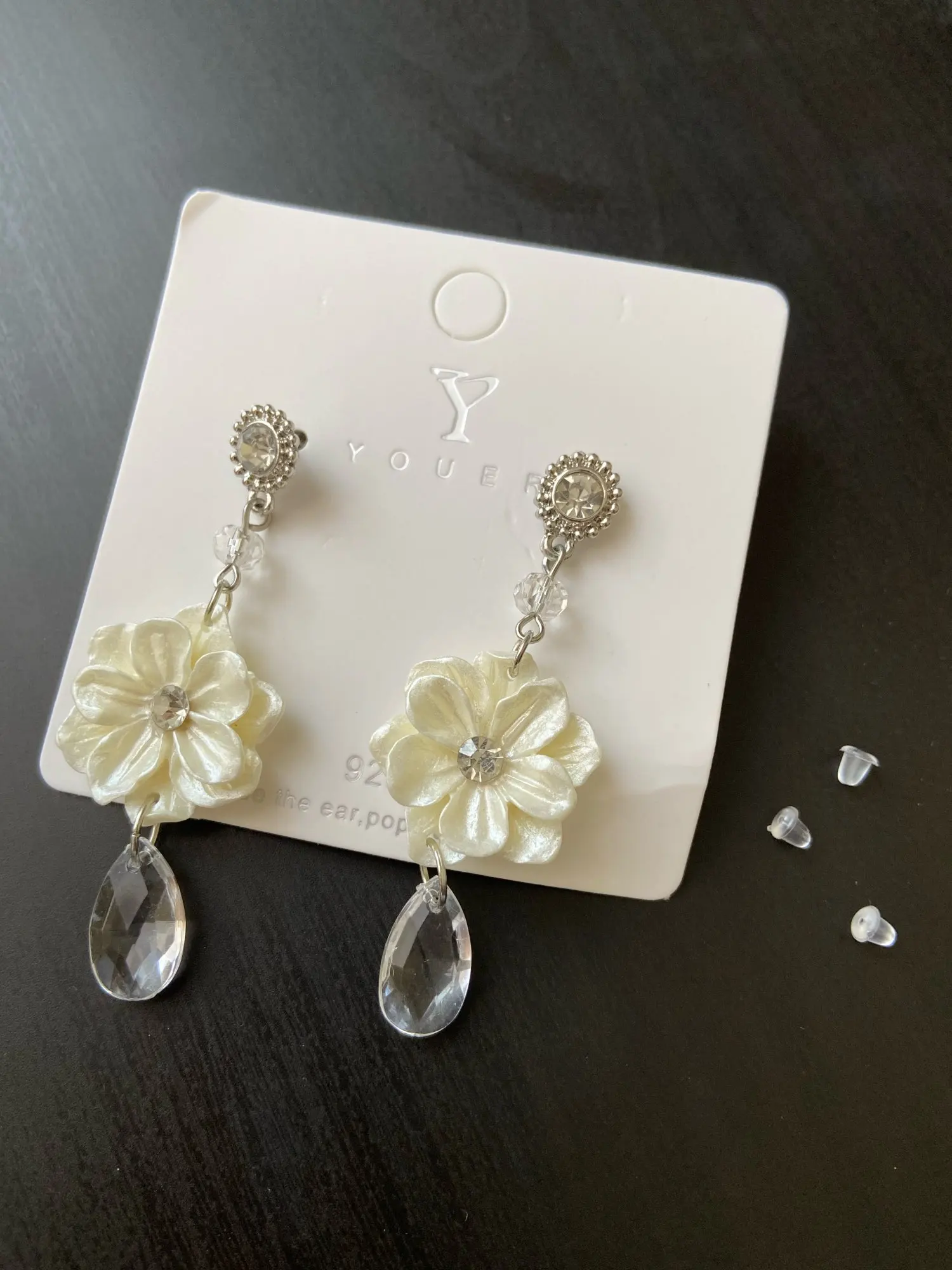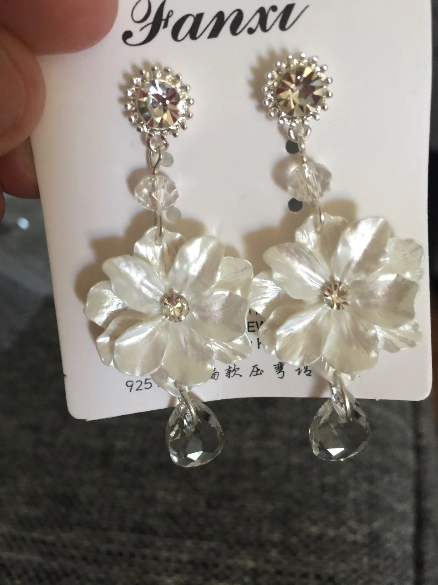 These look just like the picture. I think they did make a mistake on placing the flower upside down on one earring and not the other. Unless that was the intention. Perfect for my backyard wedding!