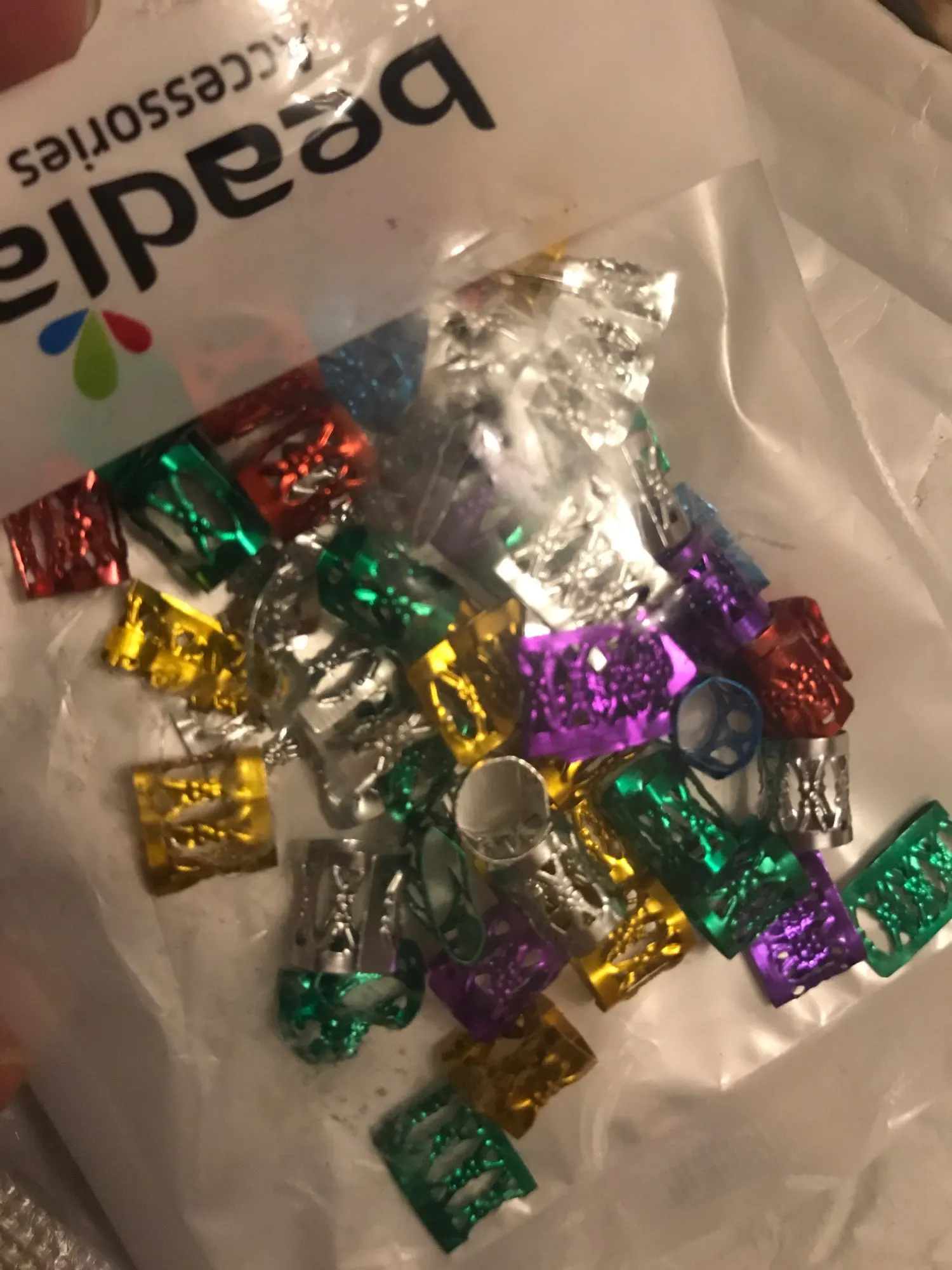 Говно!!!! Из фольги. Смеялись! В руки берешь, а они мнутся. Не покупайте если на мягкие косички. Если на оформление, на жёсткую основу, то пойдёт. А для косичек, дерьмо! Пакетик бросили в почтовый ящик. Заказ не отслеживалась. Выброшенные деньги.