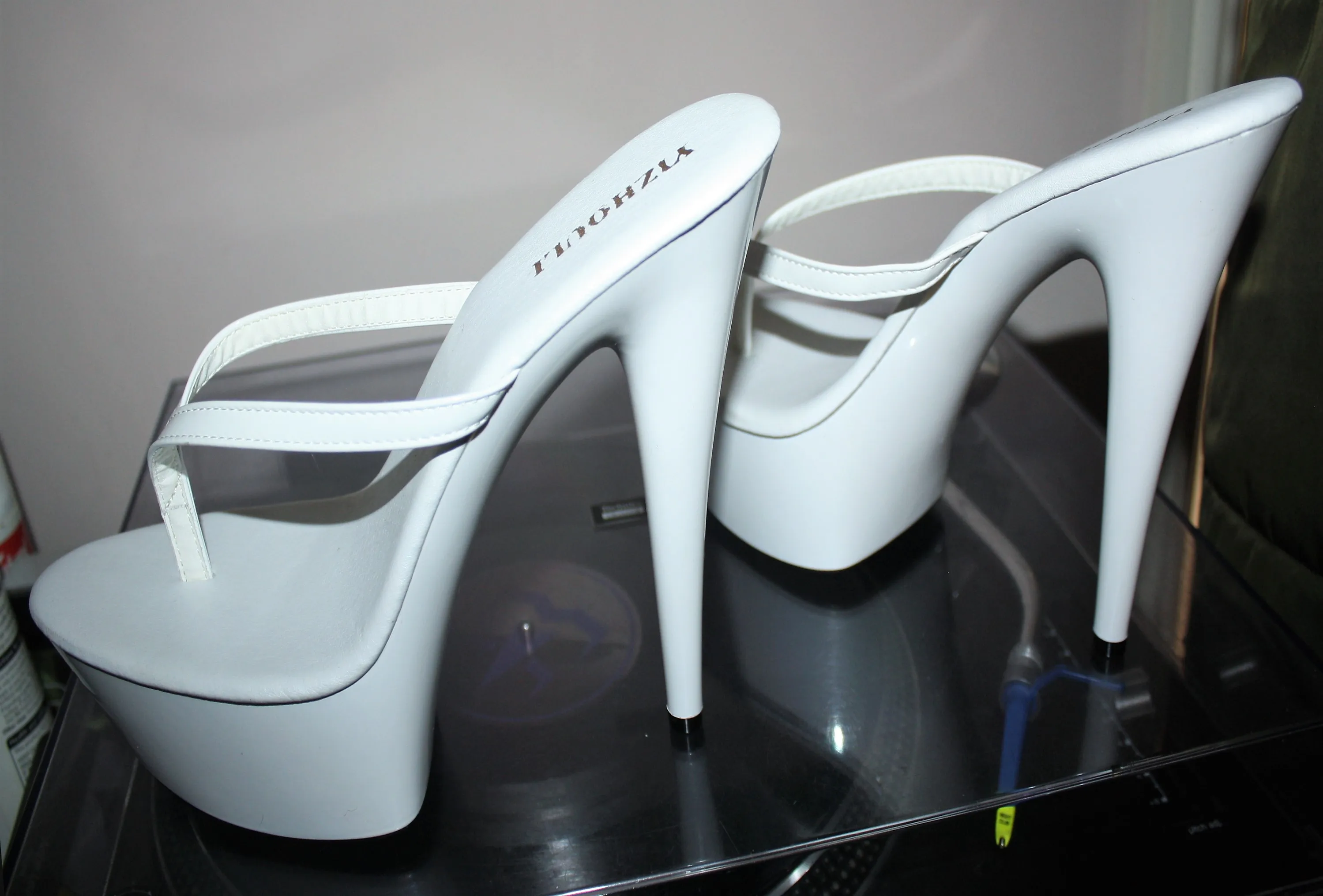 Стильные летние тапочки принцессы 15 см, сексуальные туфли на каблуках для ночного клуба и 6-дюймовые туфли на шпильке с лакированным каблуком