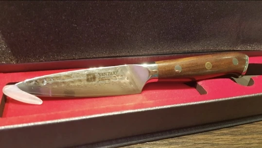 Жена в восторге! Заказал четыре ножа, как комплект. Просто безукоризненное изготовление ножей, на фото изготовителя выглядят просче чем в живую. ножи не тяжёлые и удобные. Качества металла и лака на ручке ножа покажет только время.После полугода пользования объязательно необходимо дополнить отзыв! На данный момент они идеальны!