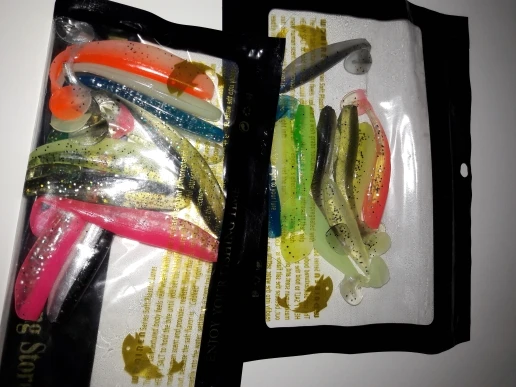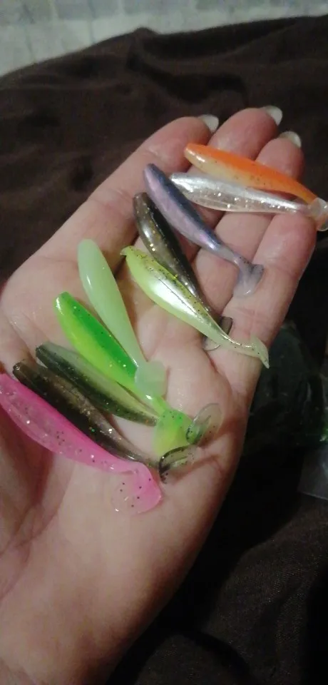Заказанный 2 октября, 4 октября, прибыл 24 октября, точное отслеживание и быстрая доставка. Искусственная резина по низкой цене. Размер и вес: 1,2 г, от 5 см до 10 шт. Яркие цвета, очень мягкая резина. Хорошо сделано, качество очень хорошее для того, чтобы стоить (очень мало). Запах не очень заметен. Предназначены для хищников небольшого размера.