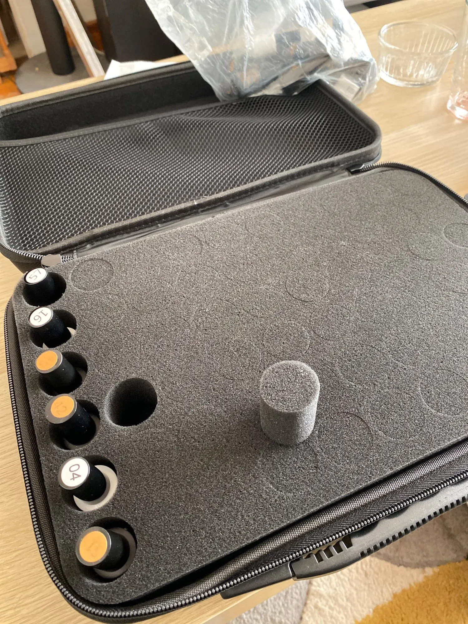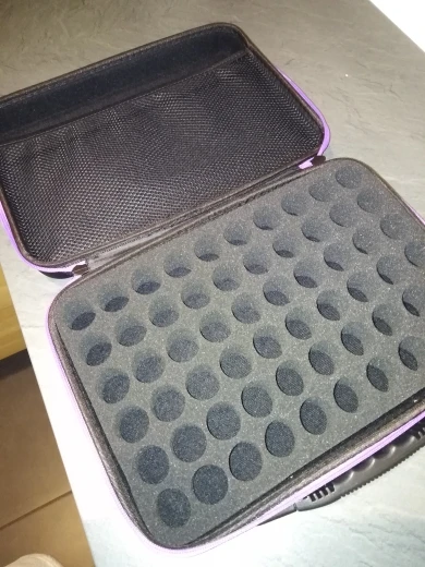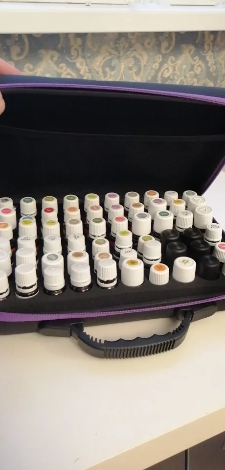 Отличный чемоданчик. Чудесно помещаются эфирные масла Дотерра 15 мл. А вот для роликов по 10 мл и флаконов 5 мл слишком большие отверстия. Нужно что-то придумывать отдельно. Чемодан очень солидно смотрится, удобно носить с собой.