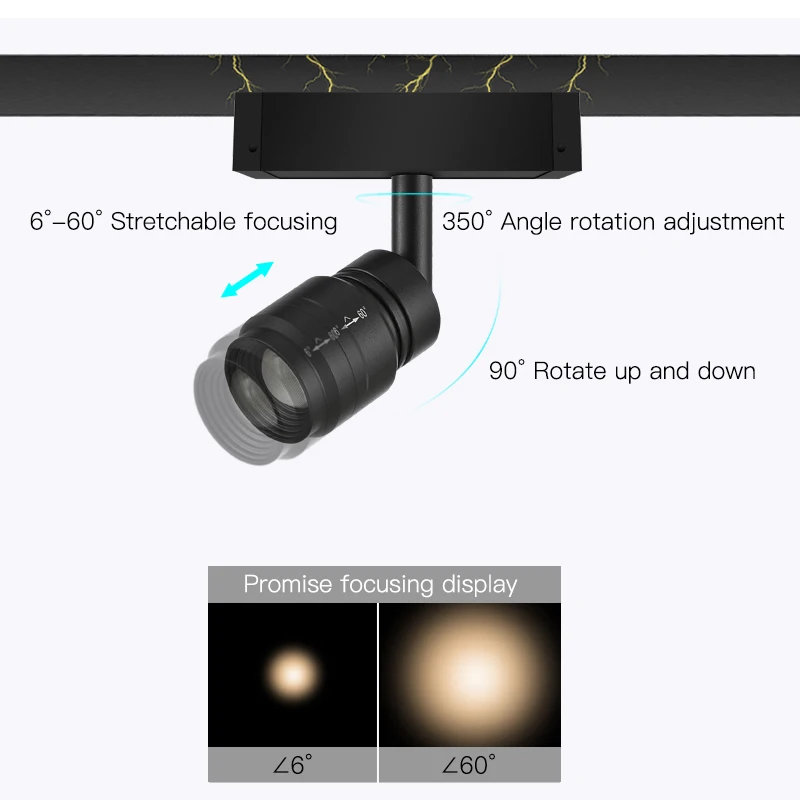 SCON Оптовая продажа Новый 7 Вт светодиодный Трековый свет магнитная система Трековый свет 6-60 градусов COB вращающийся Фокусируемый