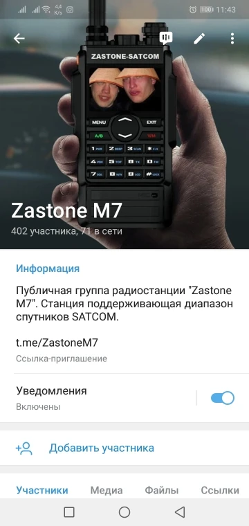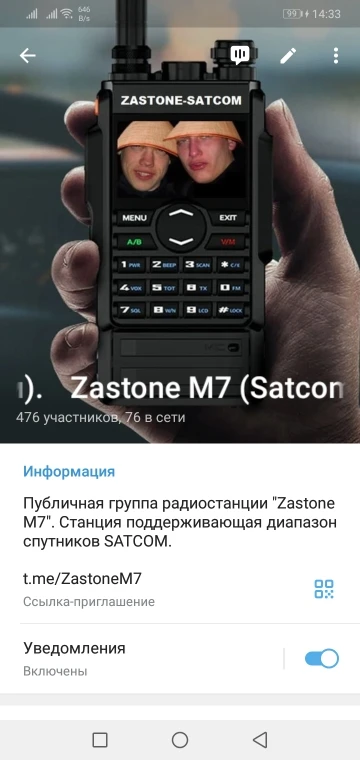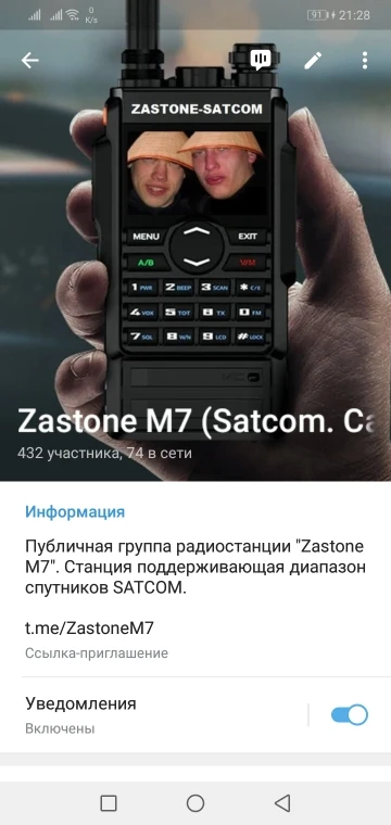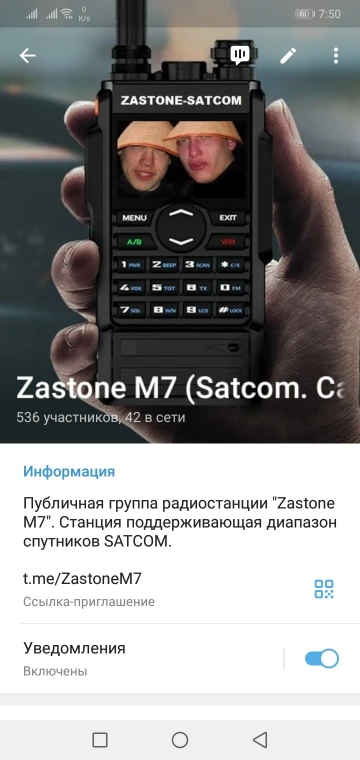 Отличные радиостанции для спутников. Доработка станций по РФ, самый крупный поставщик в России, доработанно и отправлено более 120 радиостаций. Есть группа в телеграм под названием Zastone M7 - добро пожаловать! В группе так же можно приобрести уже готовые для работы через спутники радиостанции. Присоединяйтесь. Прикрепляю скриншот группы.