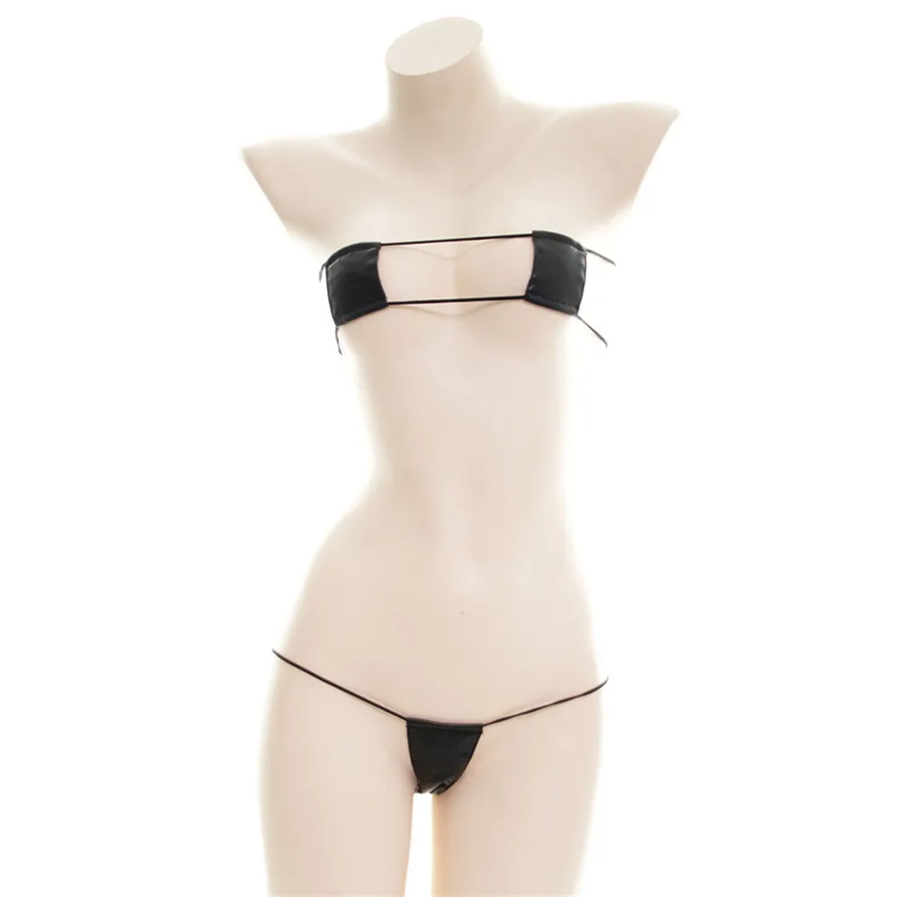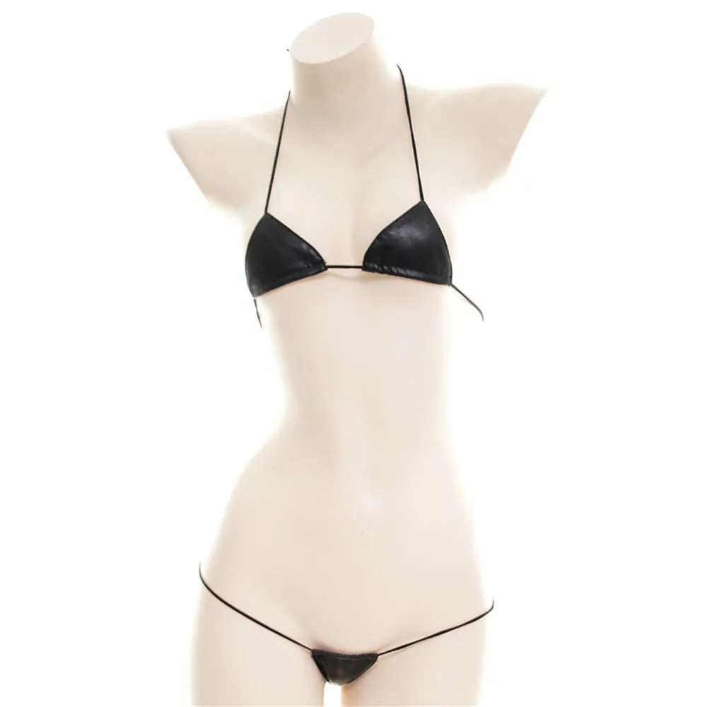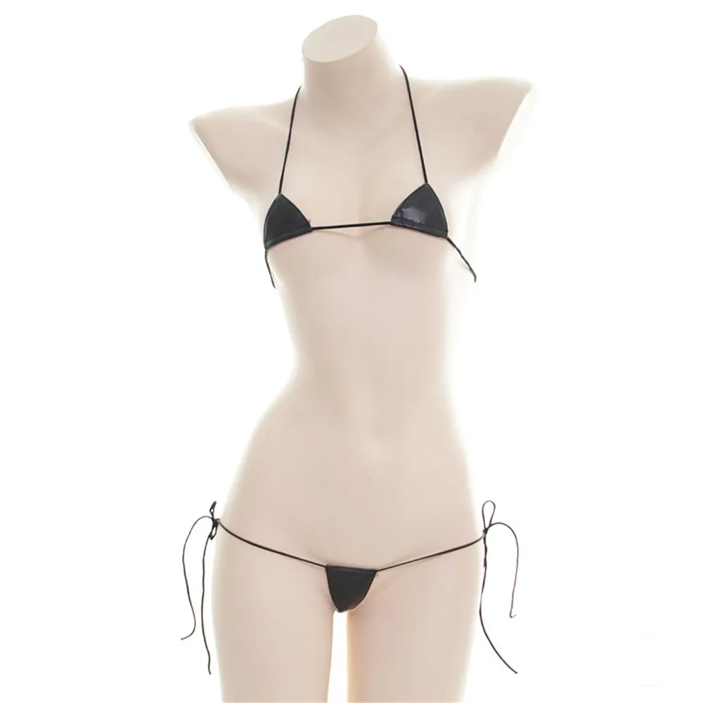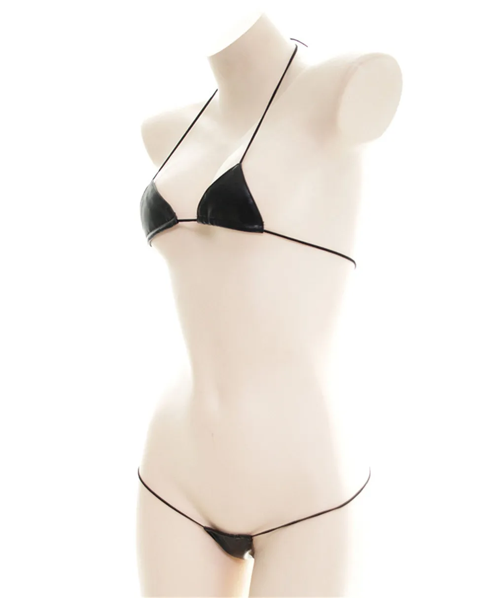 Микро-бикини, пикантные треугольные квадратные стринги из лакированной кожи, женские пляжные купальники, женский купальник, бикини, монокини