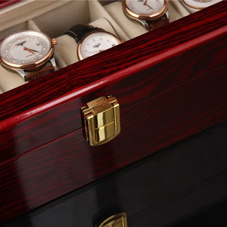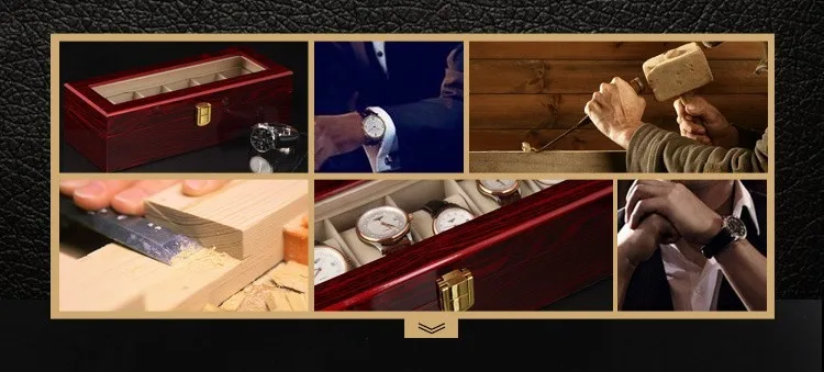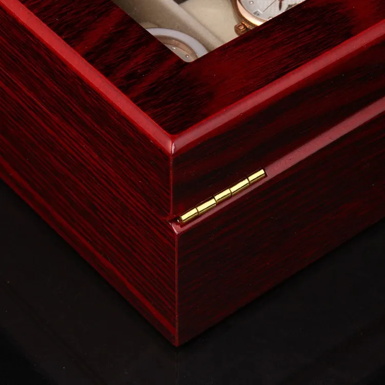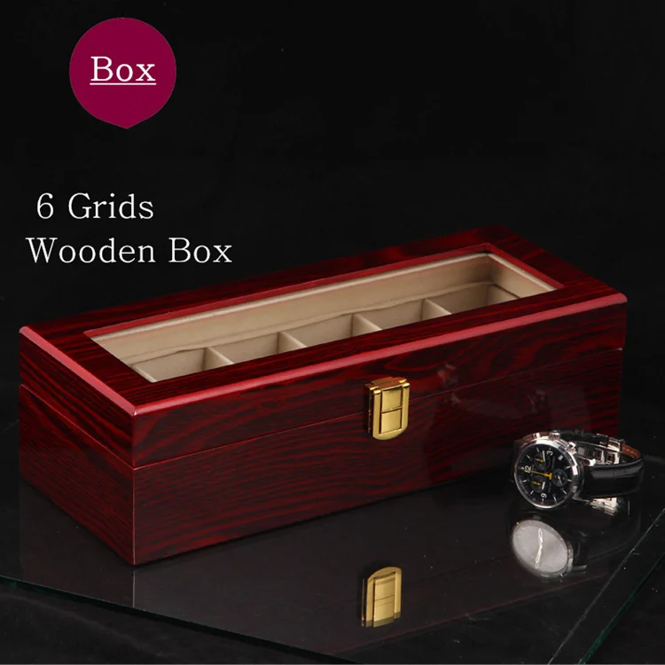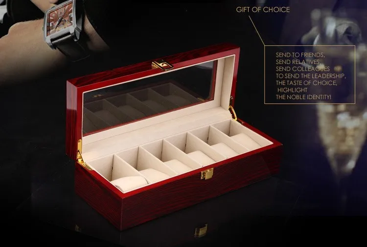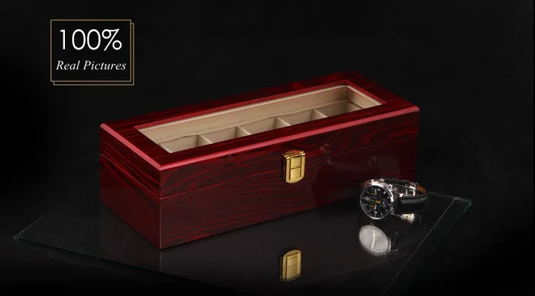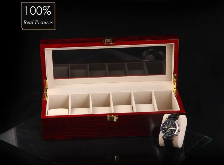6 слотов деревянный дисплей часов светлая коробка ДВП красного цвета органайзер для часов коробка для хранения часов держатель для Хранения Драгоценностей чехол