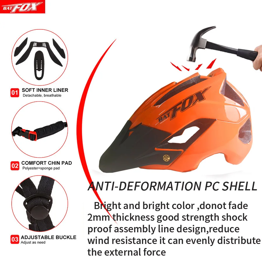 Горный велосипедный шлем BATFOX, шлем для горного велосипеда, для мужчин и женщин, оранжевая модель, большой козырек для занятий спортом на открытом воздухе