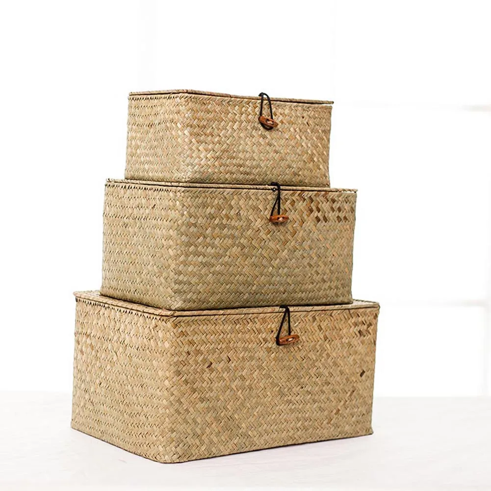Соломенная плетеная корзина для хранения игрушек в стиле ретро, домашний Организатор для мелочей