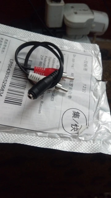 Переходник аудио 3,5мм jack (разъем)2 RCA (штекер), Для DVD, телевизора, видеомагнитофона, для динамика, усилителя, наушников