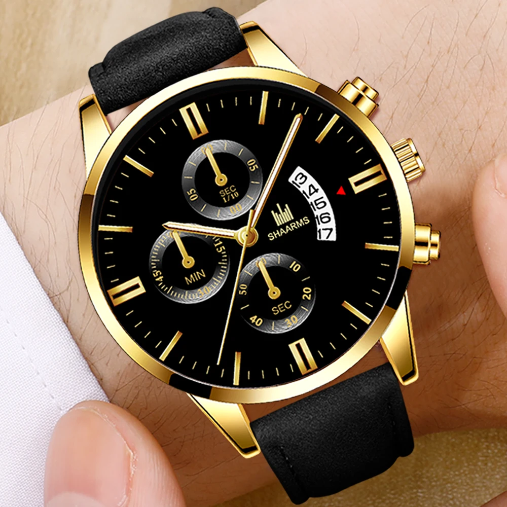 Часы мужские, повседневные, кварцевые, с кожаным ремешком, черные, 2020
