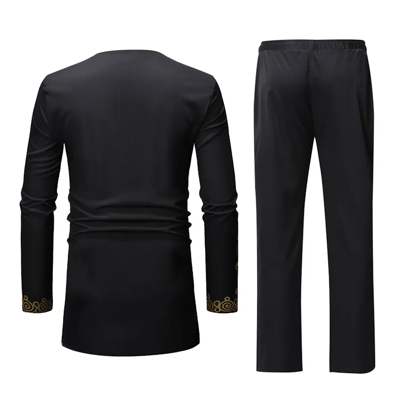 Комплект одежды из 2 предметов, мужская рубашка + брюки, Африканский стиль, 3D принт, Дашики, Базен, Riche, костюмы, мужские топы с длинными рукавами, наряды