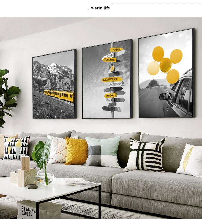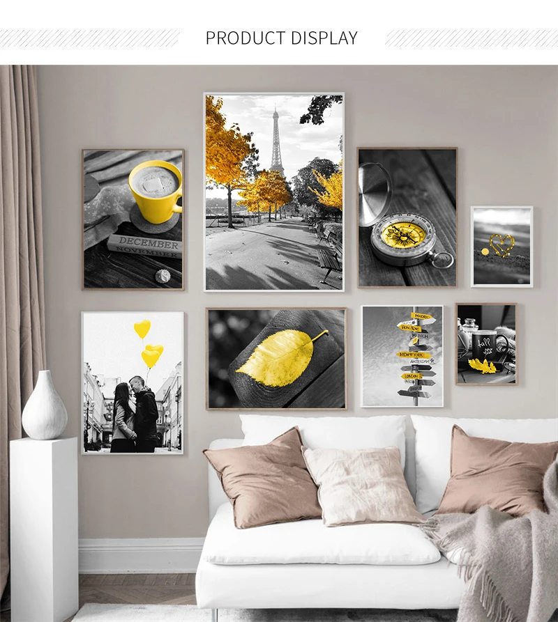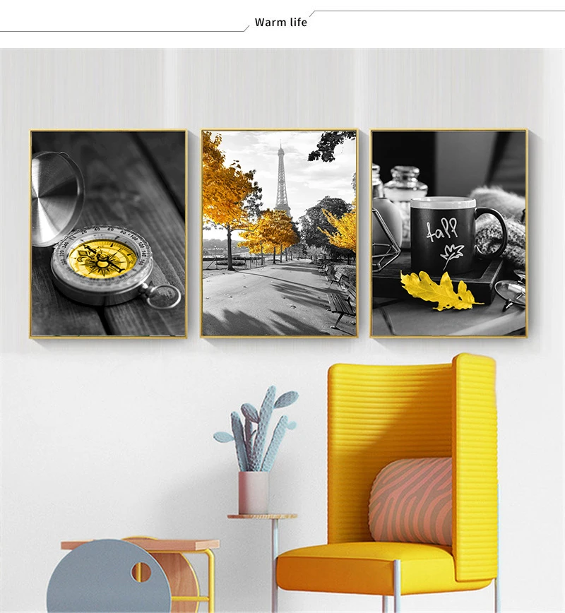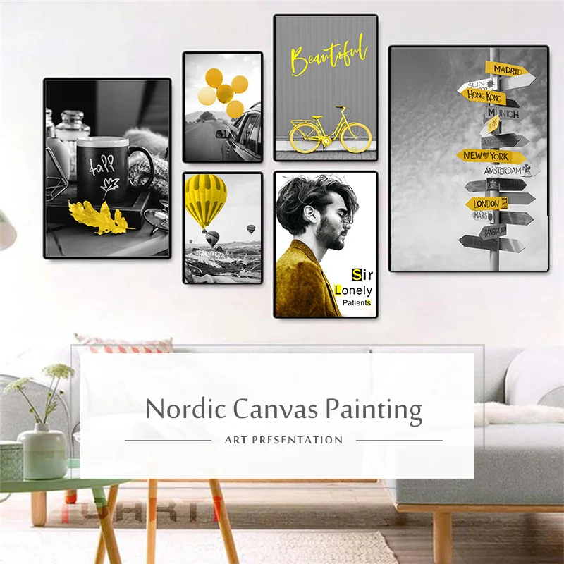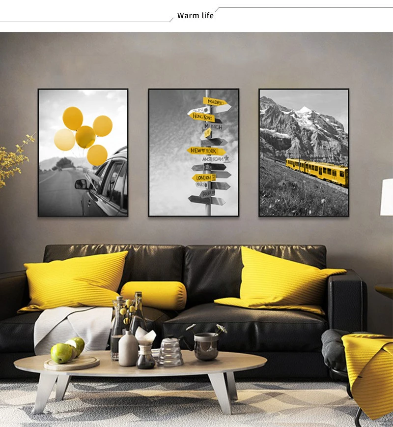 Картина в желтом стиле, Декор для дома, Скандинавская Картина на холсте, настенный плакат, рисунок, пейзаж, современный постер для гостиной