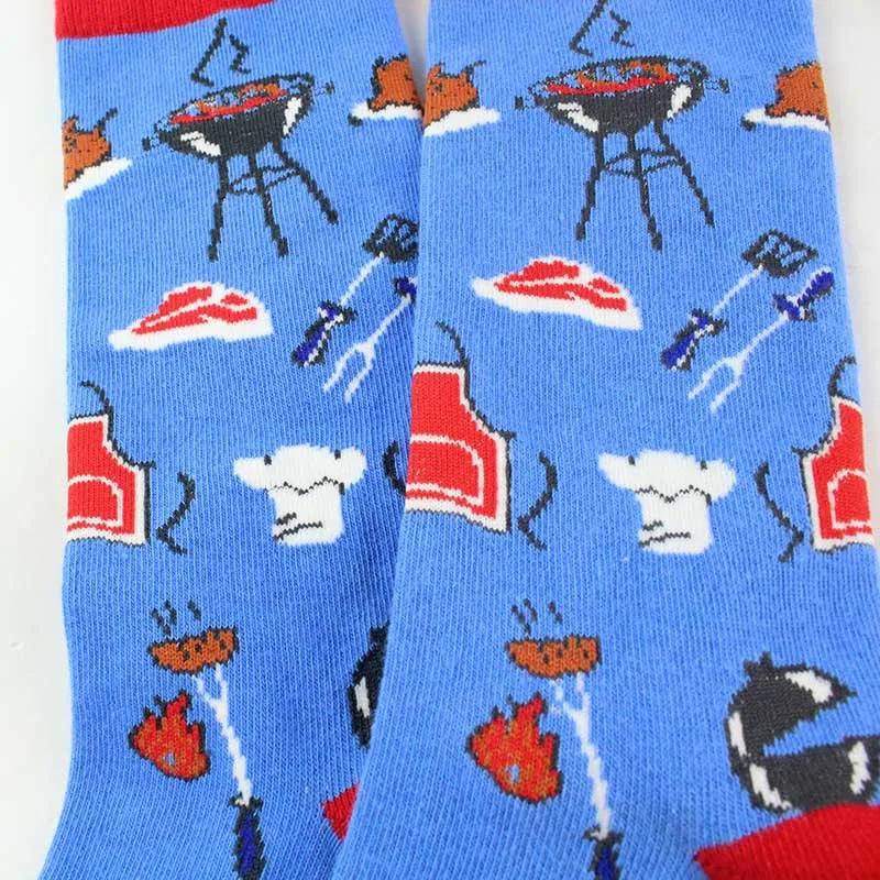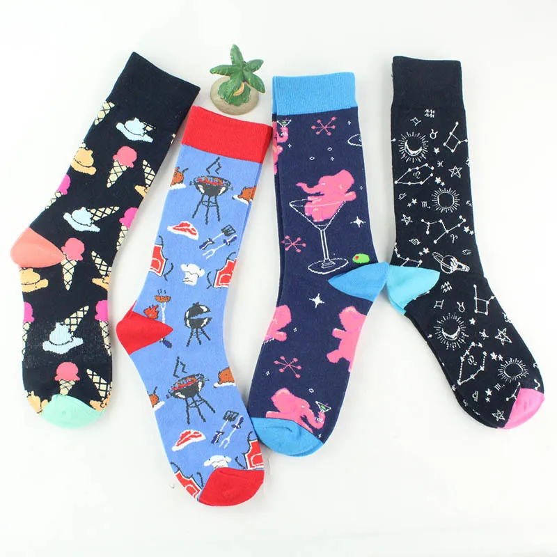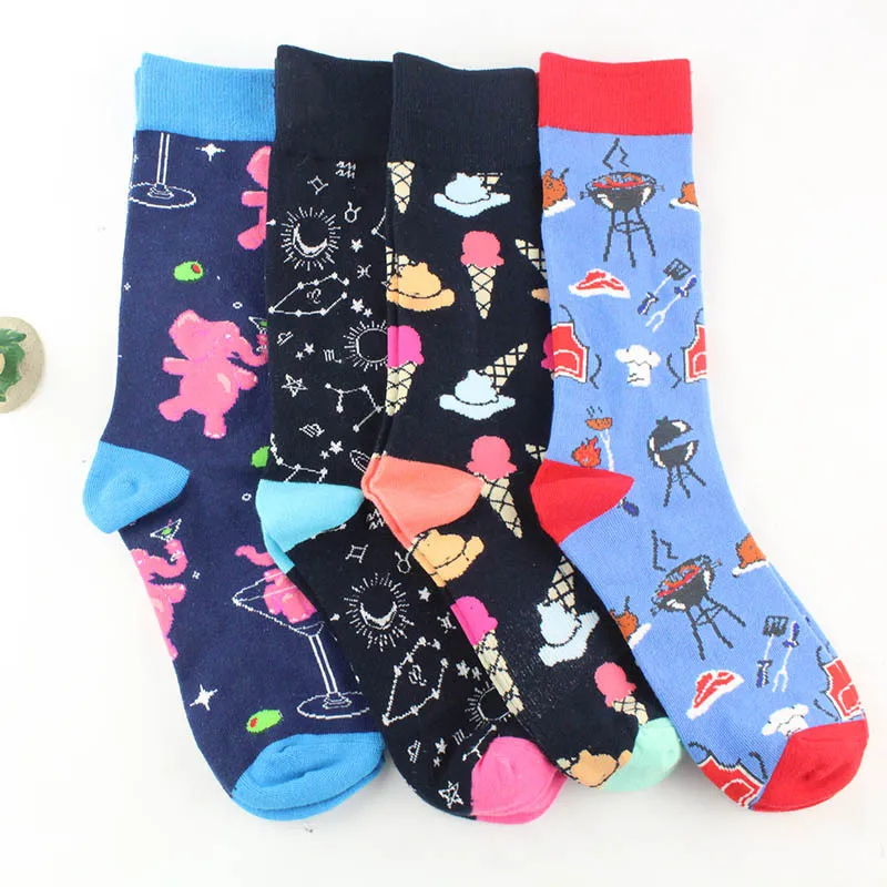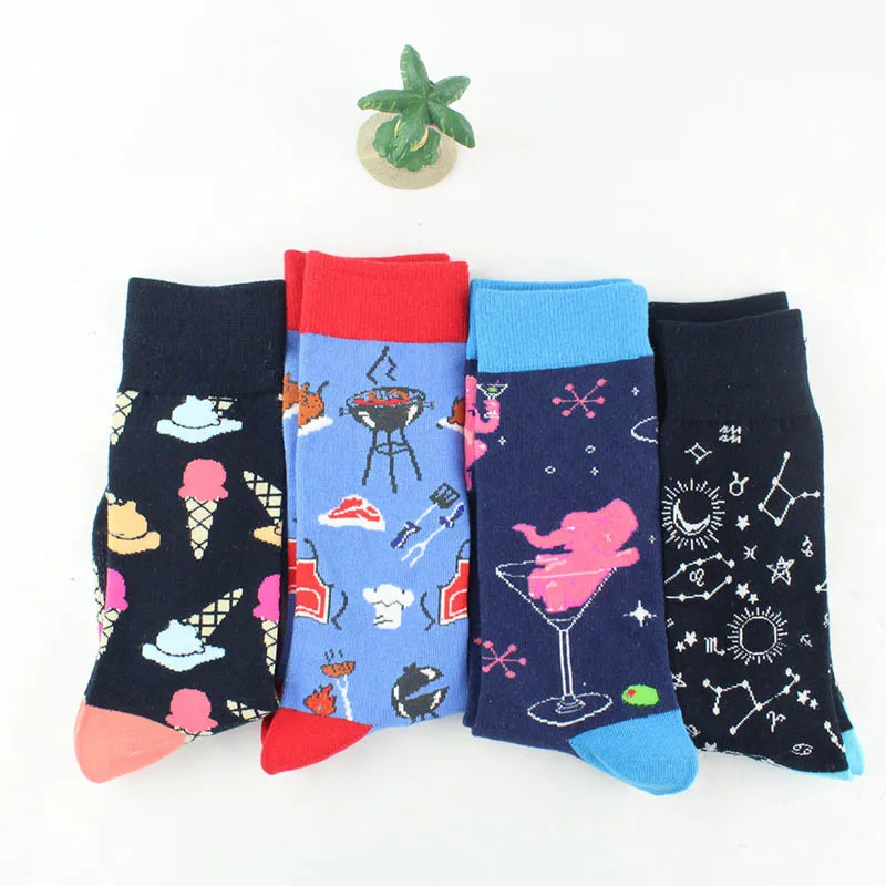 Прямая Поставка взрослых хлопчатобумажные забавные носки до колена счастливый сладкий Sox Вселенной эскиз пиво пицца мясо динозавра автомобиля Вино Кубок Слон