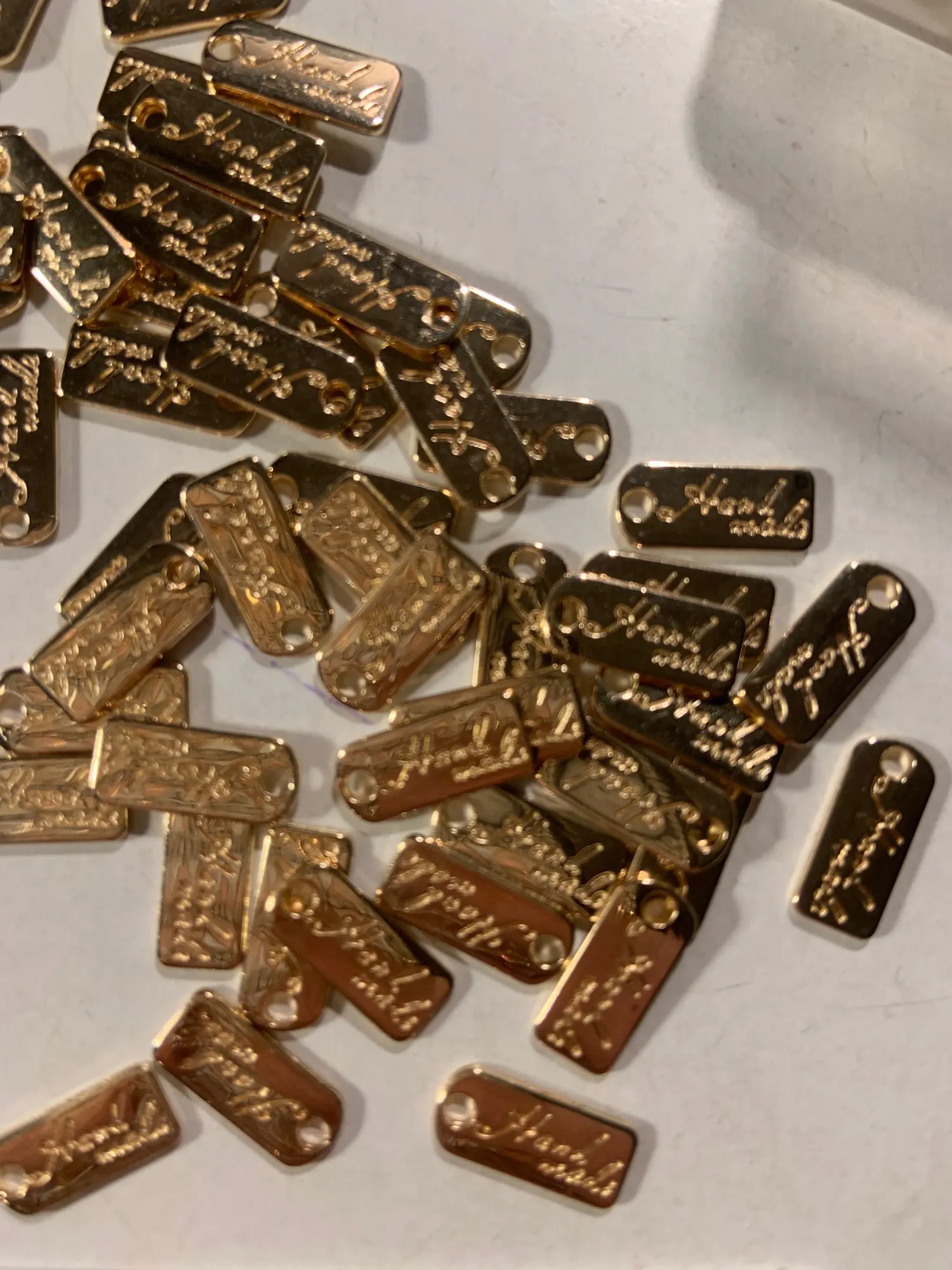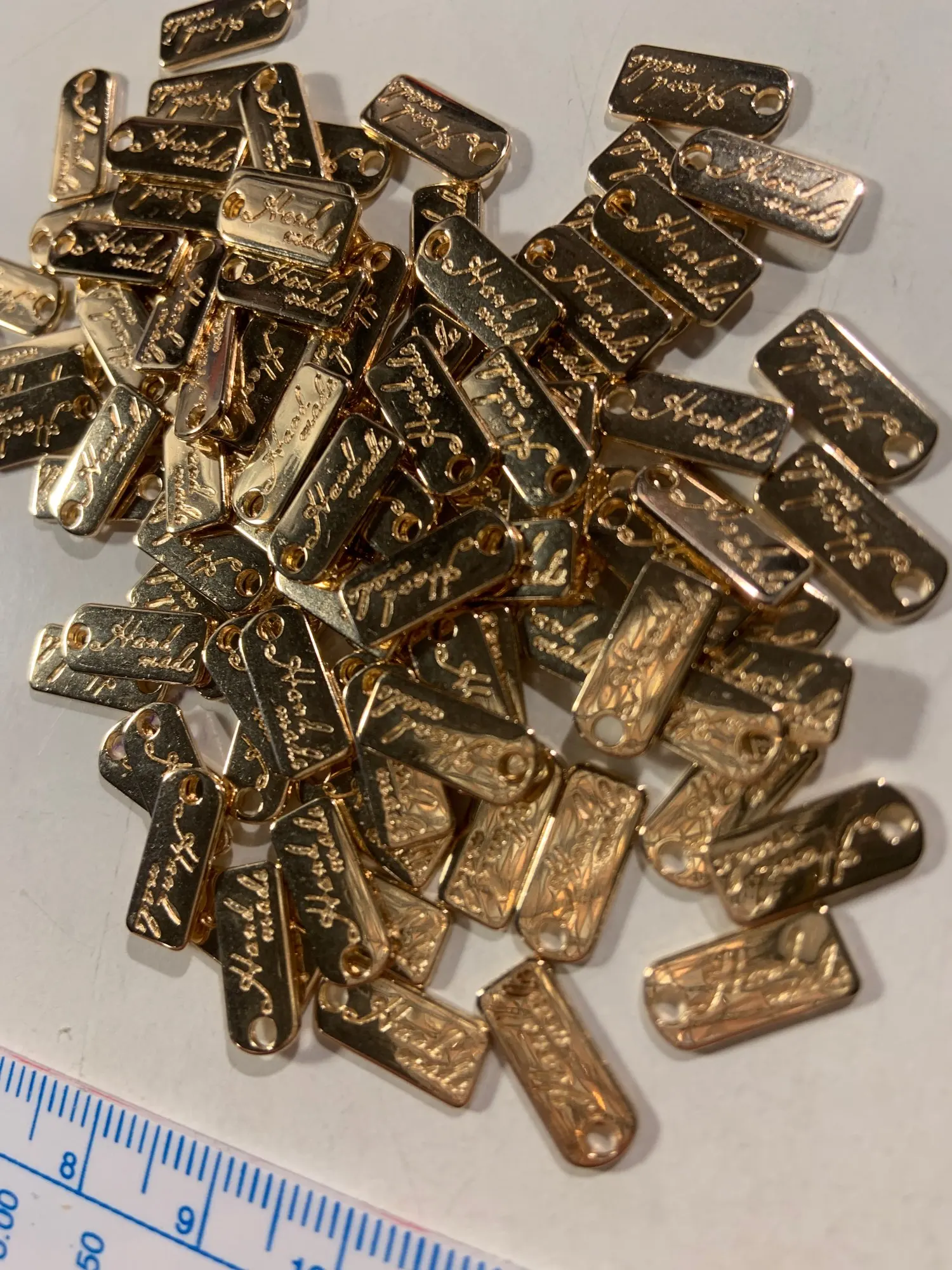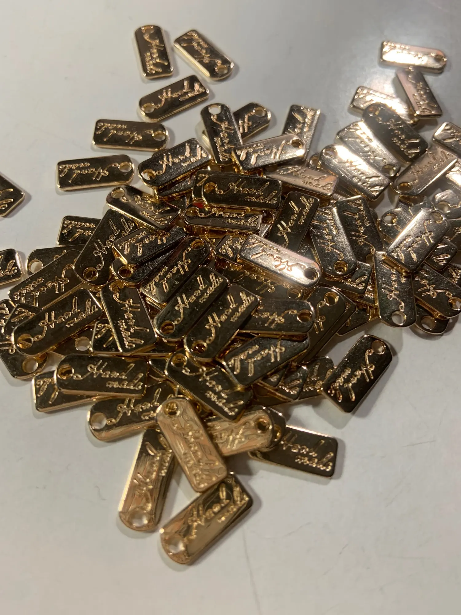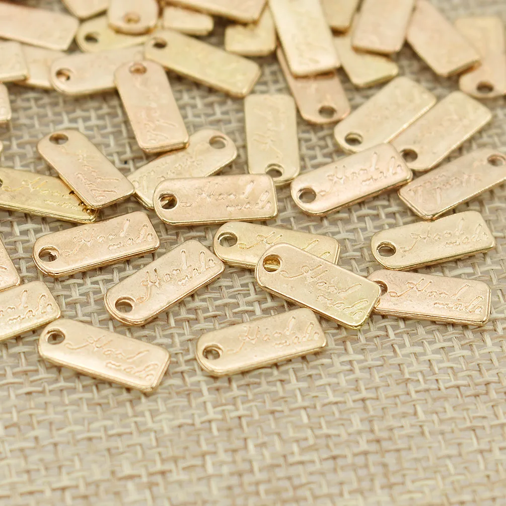 100 шт. классические металлические этикетки ручной работы, прямоугольные золотистые наклейки для пальто, одежды, сумок, обуви, рукоделия сделай сам, бирки для аксессуаров
