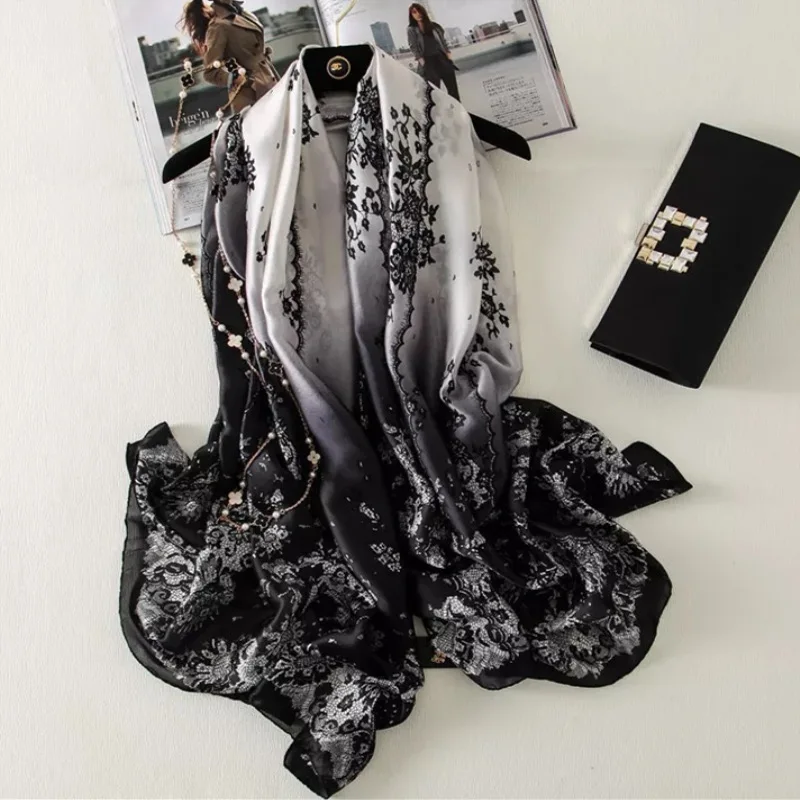 2021 роскошный брендовый летний женский Шарф Модные Качественные мягкие шелковые шарфы женские шали платок Пляжная накидка шелковая бандана