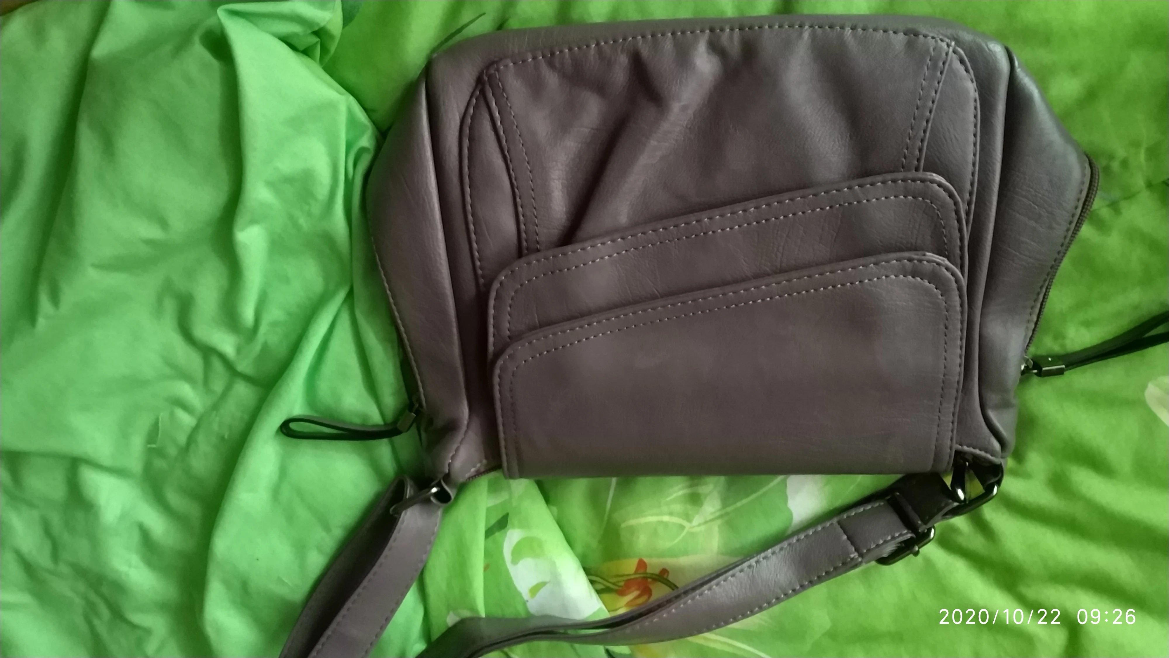 посылка дошла быстро, сумка мягкая, очень много Карманов, цвет в цвет(серая) выглядит скромно