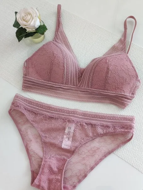 Женское нижнее белье 4 цветов, ультратонкий кружевной бюстгальтер без косточек с треугольными чашками, комплект нижнего белья пуш-ап, хлопковый бюстгальтер и трусики