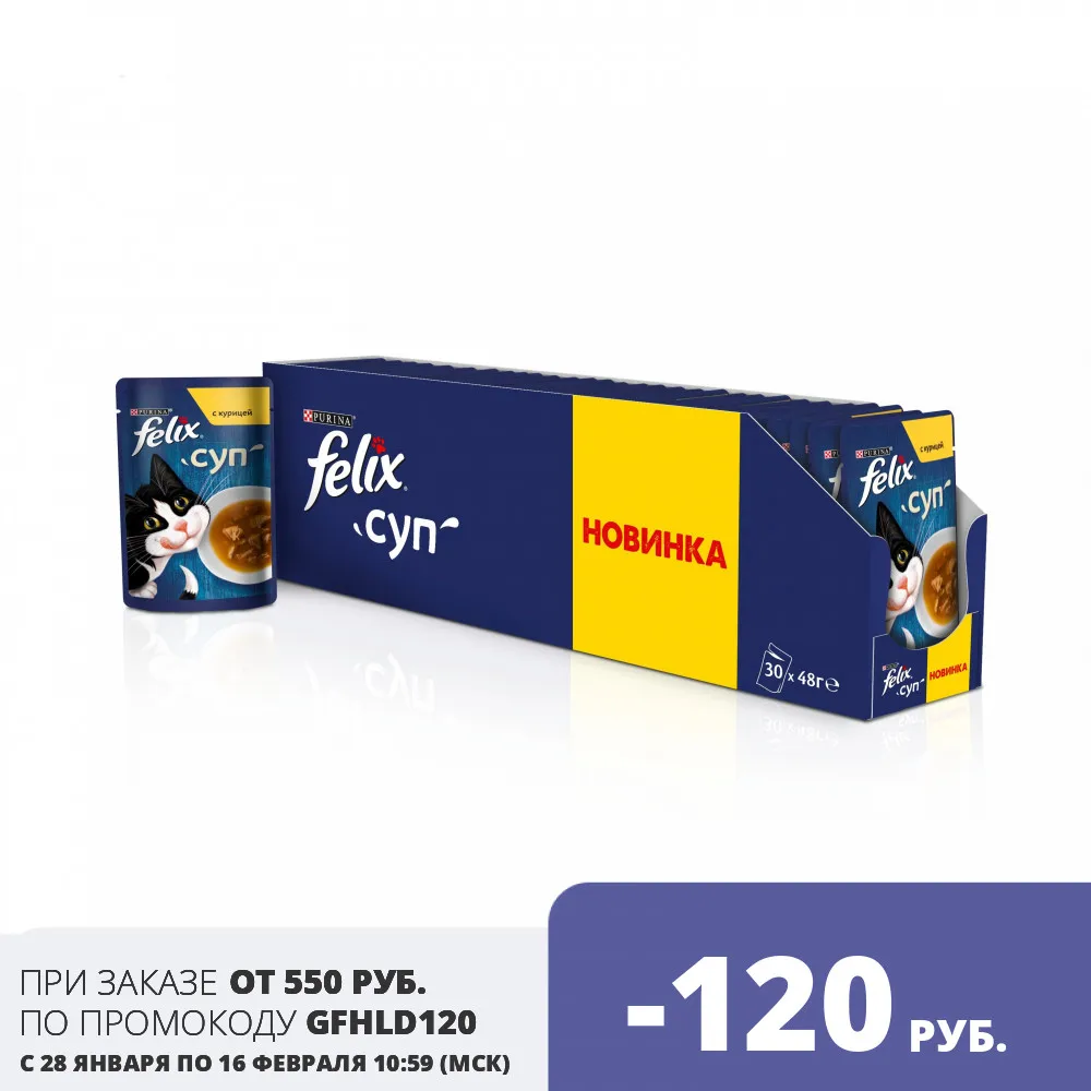 Набор Влажный корм Felix суп для взрослых кошек с курицей, 48г x 30 шт.
