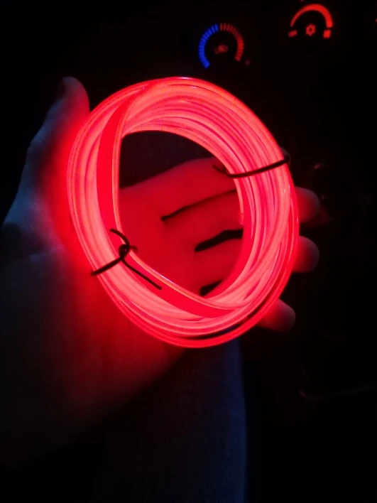 Пришел экспресс доставкой за 4 дня до Оренбурга. Светит и не ярко и не тускло, то что надо, не отвлекает от езды ночью. Очень неприхотливый материал, в некоторых местах приходилось заталкивать отверткой, но ничто нигде не помялось и не сломалось. 5 метров не хватило, хотел еще панель под магнитолой захватить, те кто хочет такой же результат как у меня, берите 5 метров, 3 метра мало на что хватит