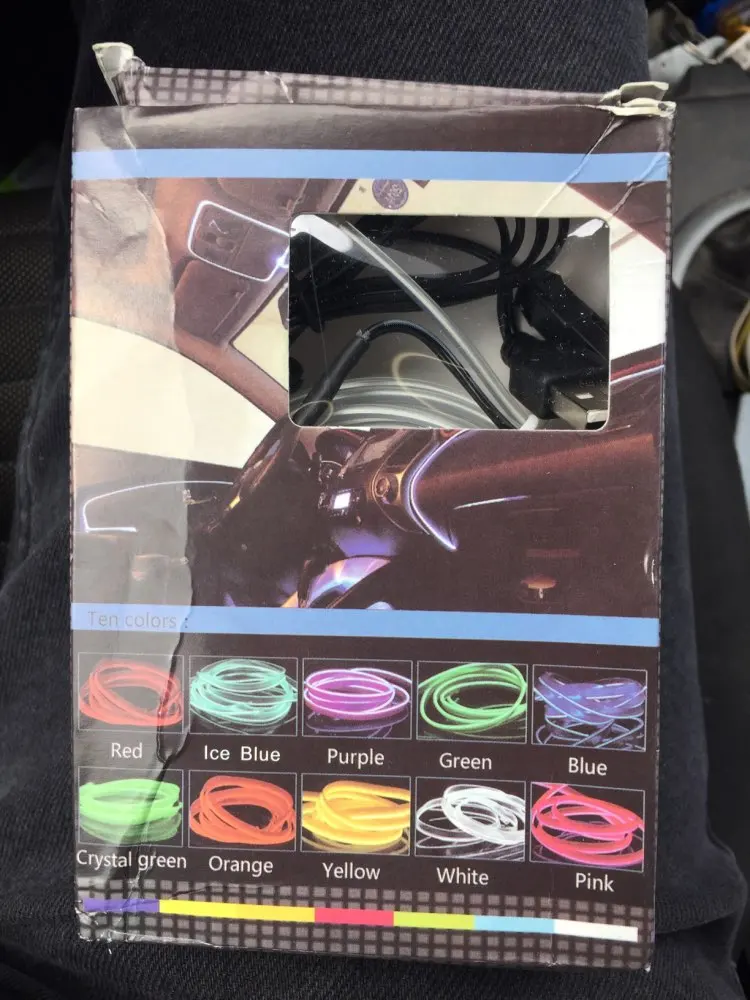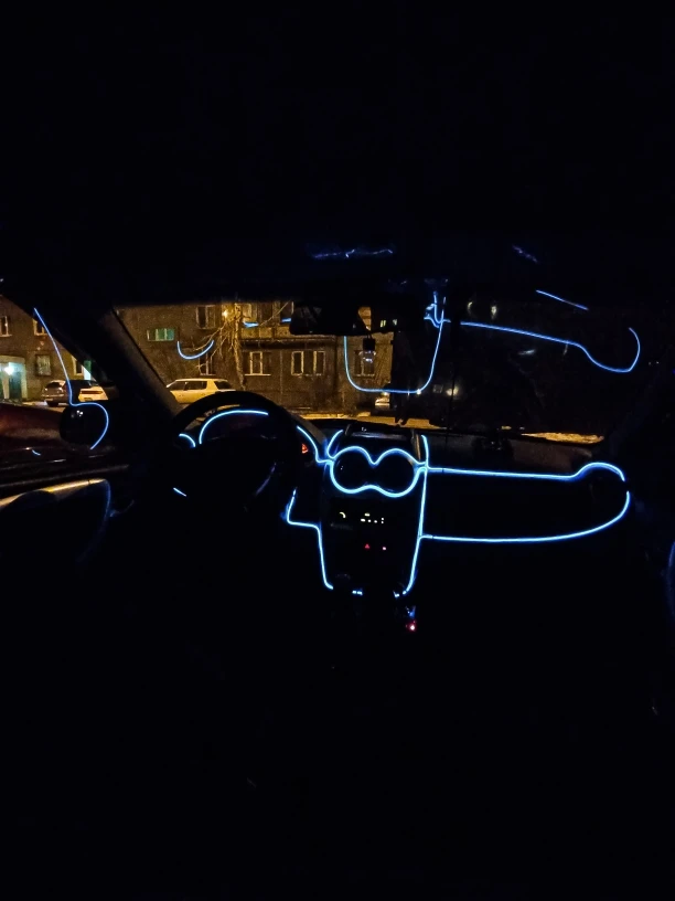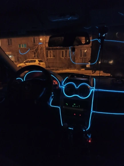 Прикольная вещь, придает салону необычный вид. Несильно яркая, поэтому глазам не мешает, крепится легко, не использовал ни клея, ни ленты. Рекомендую