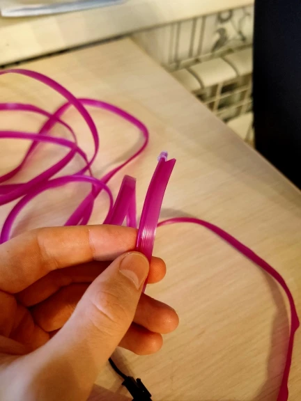 Прикольная подсветка, цвет более сиреневый чем фиолетовый. В Калугу приехала за 2 дня, быстрее чем ожидалась. Не понятно можно ли будет использовать оставшийся кусок, надеюсь что можно будет.