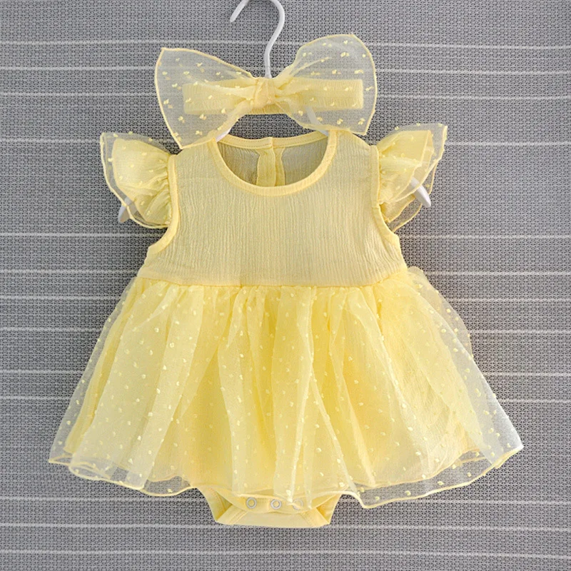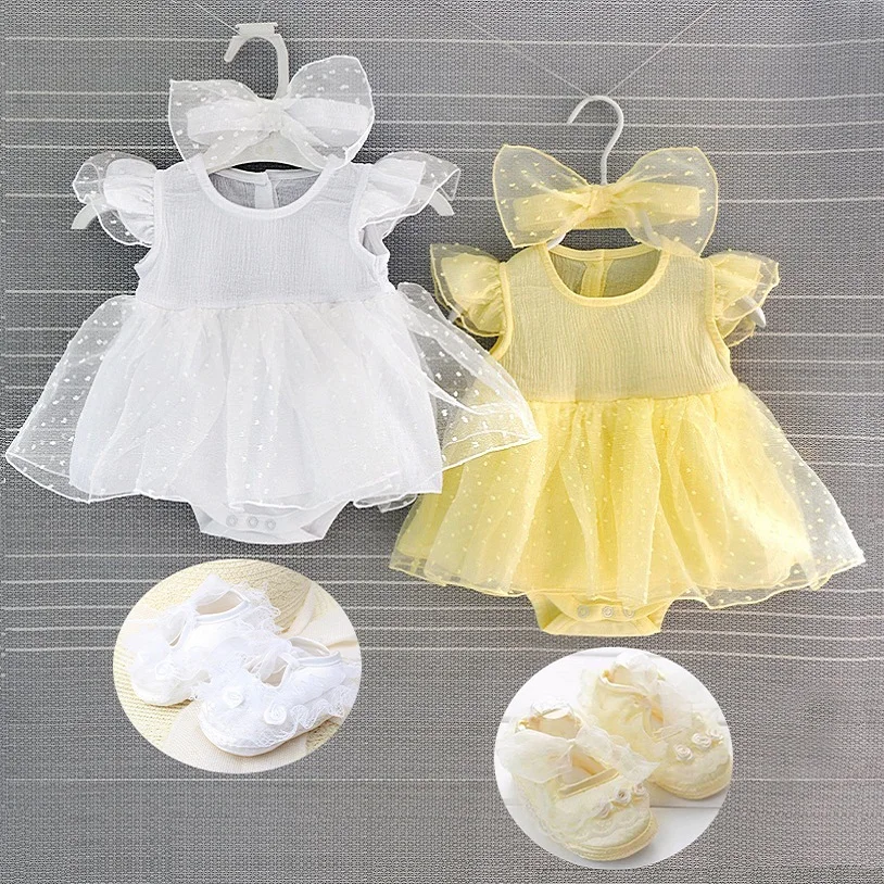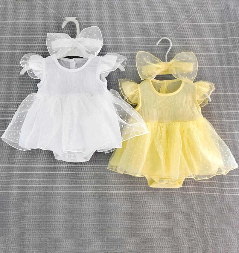 Желтое платье для новорожденных, белое кружевное платье для крещения, платья для девочек 3, 6, 9 месяцев, 2019