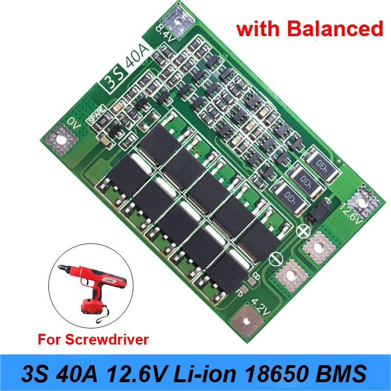 Защитная плата аккумулятора 3S 40A для отвертки, 12 В, литий-ионная 18650 Bms Pcm, Bms Pcm с балансиром, модуль литий-ионной батареи