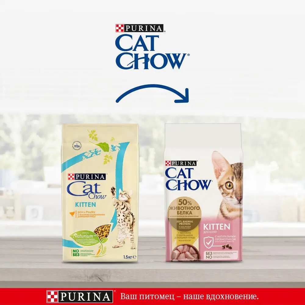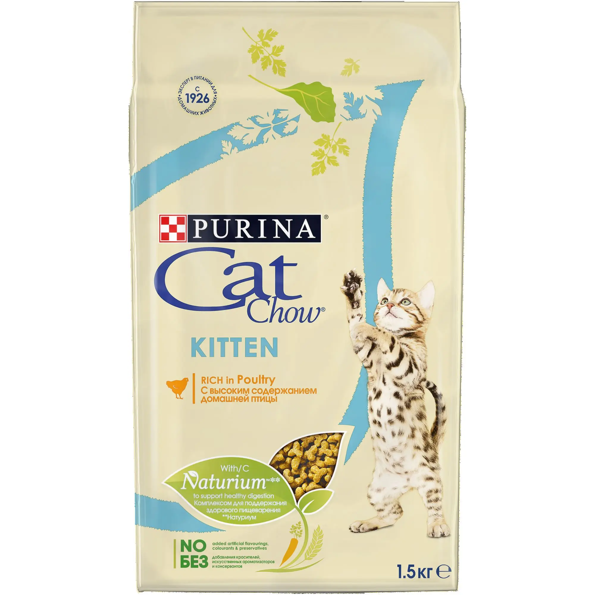 Сухой корм Cat Chow для котят с домашней птицей, Пакет, 1,5 кг