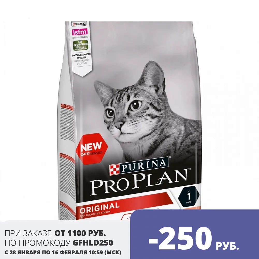 Сухой корм Purina Pro Plan для взрослых кошек от 1 года, с лососем, Пакет, 1.5 кг
