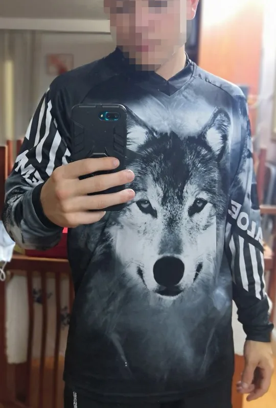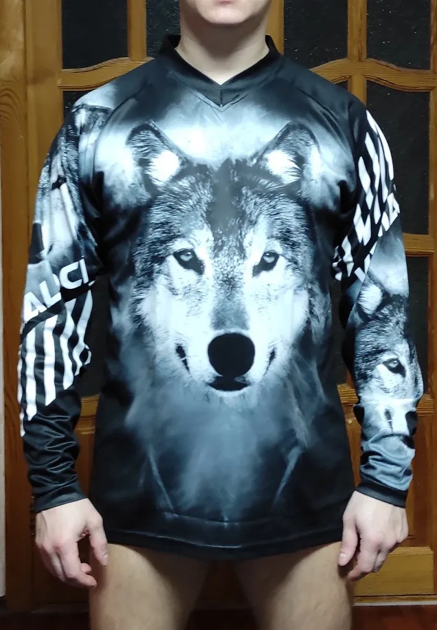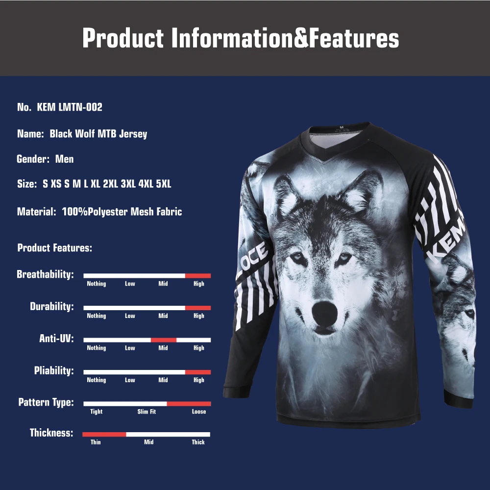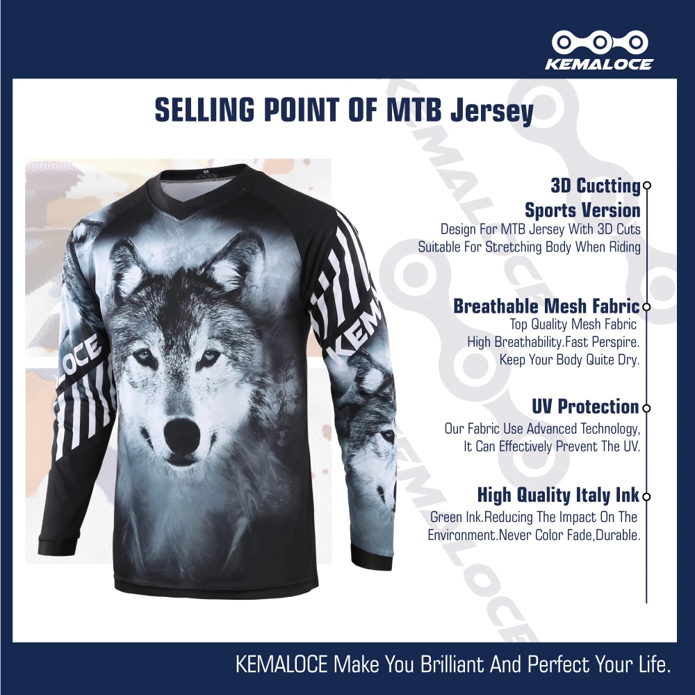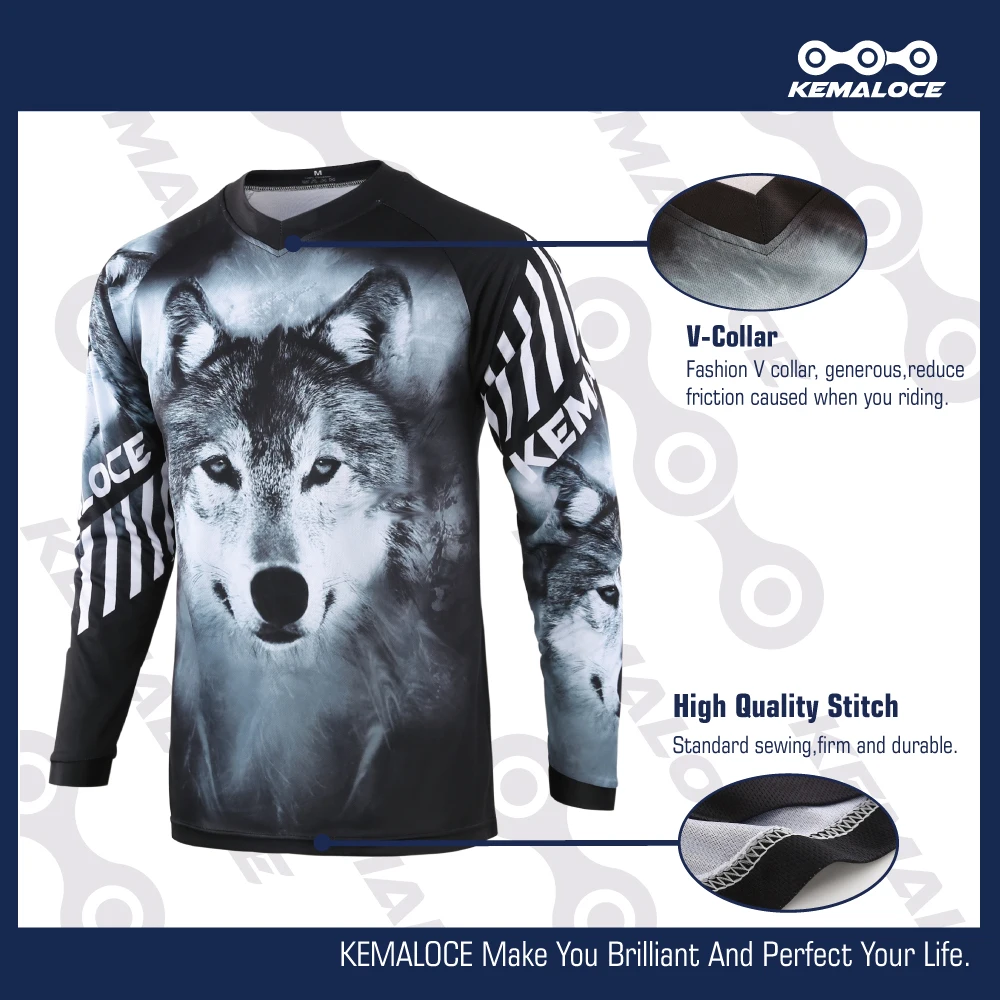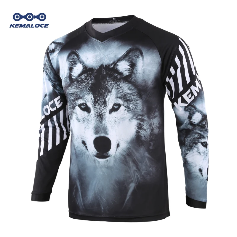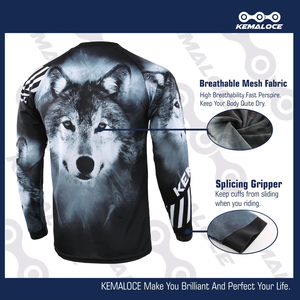 Джерси для горного велосипеда KEMALOCE, дышащая быстросохнущая футболка для мотокросса Black Wolf футболки BMX с длинным рукавом для горного велосипеда