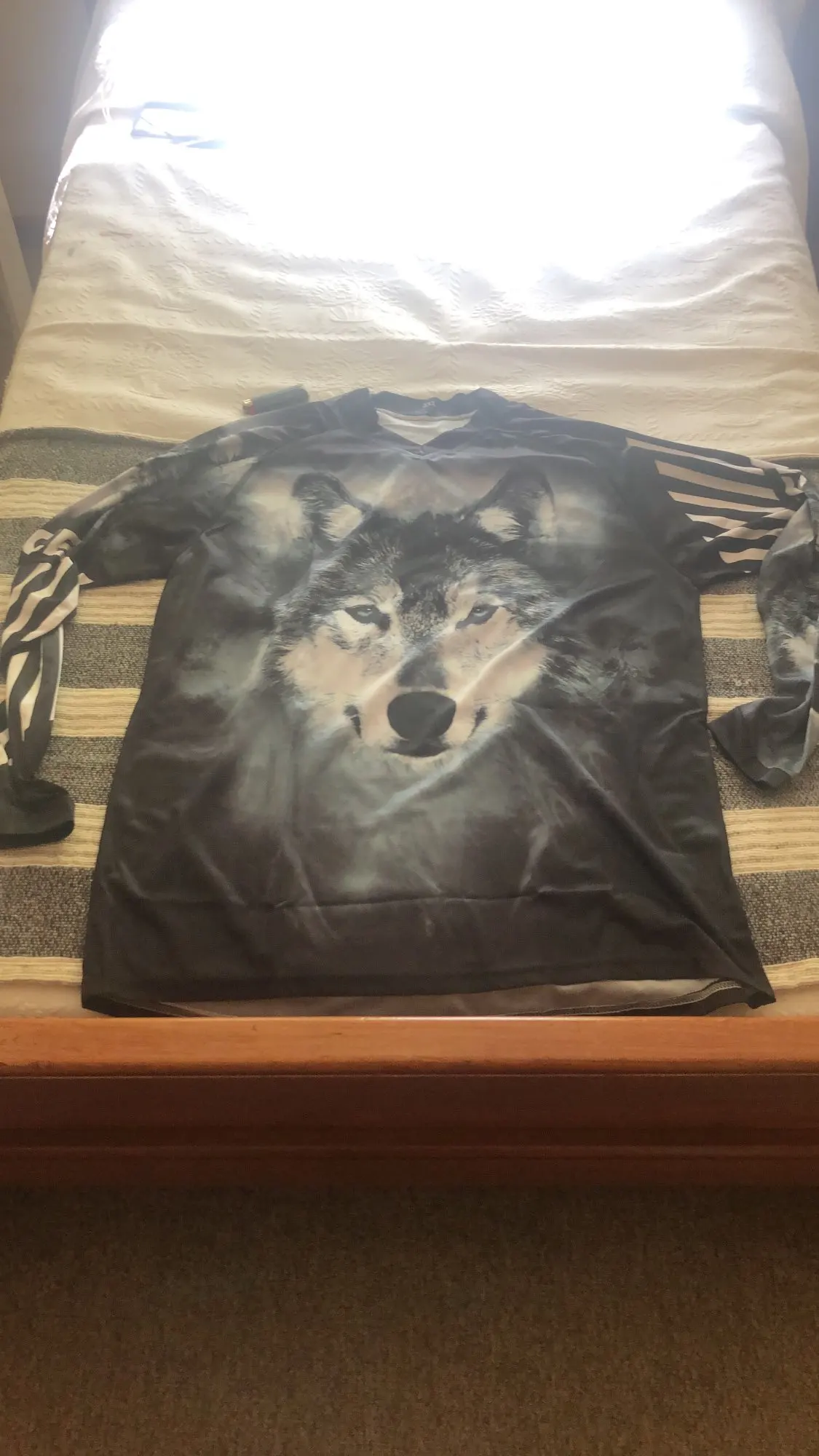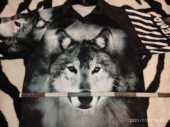 Эта футболка-лучшее, что я когда-либо пробовал менее 10 евро. У меня 184 см, Вес 77 кг, и я достаточно большой в мышцах, это очень удобно, и размер идеален. Рисунок волка меня любит, и, конечно, мои друзья хотят один из них, насколько он потрясающий. Прилагается фото для того, чтобы увидеть, как он выглядит. Я рекомендую его всем, и те, кто любит волков, уже запоздали в покупке.