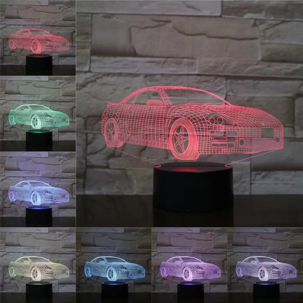 Новинка, гоночный спортивный автомобиль, 3D лампа, светильник, светодиодная лампочка, многоцветный, праздничный, Рождественский, день рождения, портативный подарок для детей, детская игрушка