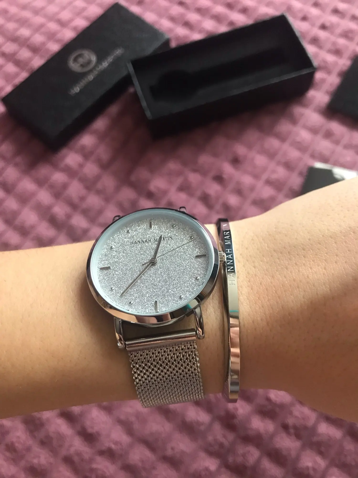 Очень красивые часы и браслет. Пришли в коробке, всё было хорошо упакованно, каждая деталь часов была в специальной защитной пленке. Продавец достаточно быстро отправил товар и он быстро дошел до Эстонии (по коду отслеживания), только задержался на границе нашей. Часы выглядят красиво и дорого несмотря на нержавеющую сталь из которой они сделаны. Практически не отличаются от настоящего золота (пример на последнем фото с золотым браслетом). Большое спасибо, буду заказывать еще! ✨