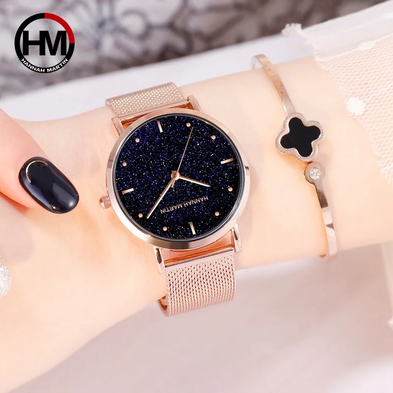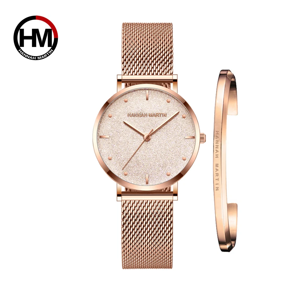 Прямая поставка, японский кварцевый креативный дизайн, водонепроницаемые часы из розового золота с сетчатым браслетом из нержавеющей стали, 1 комплект, женские часы