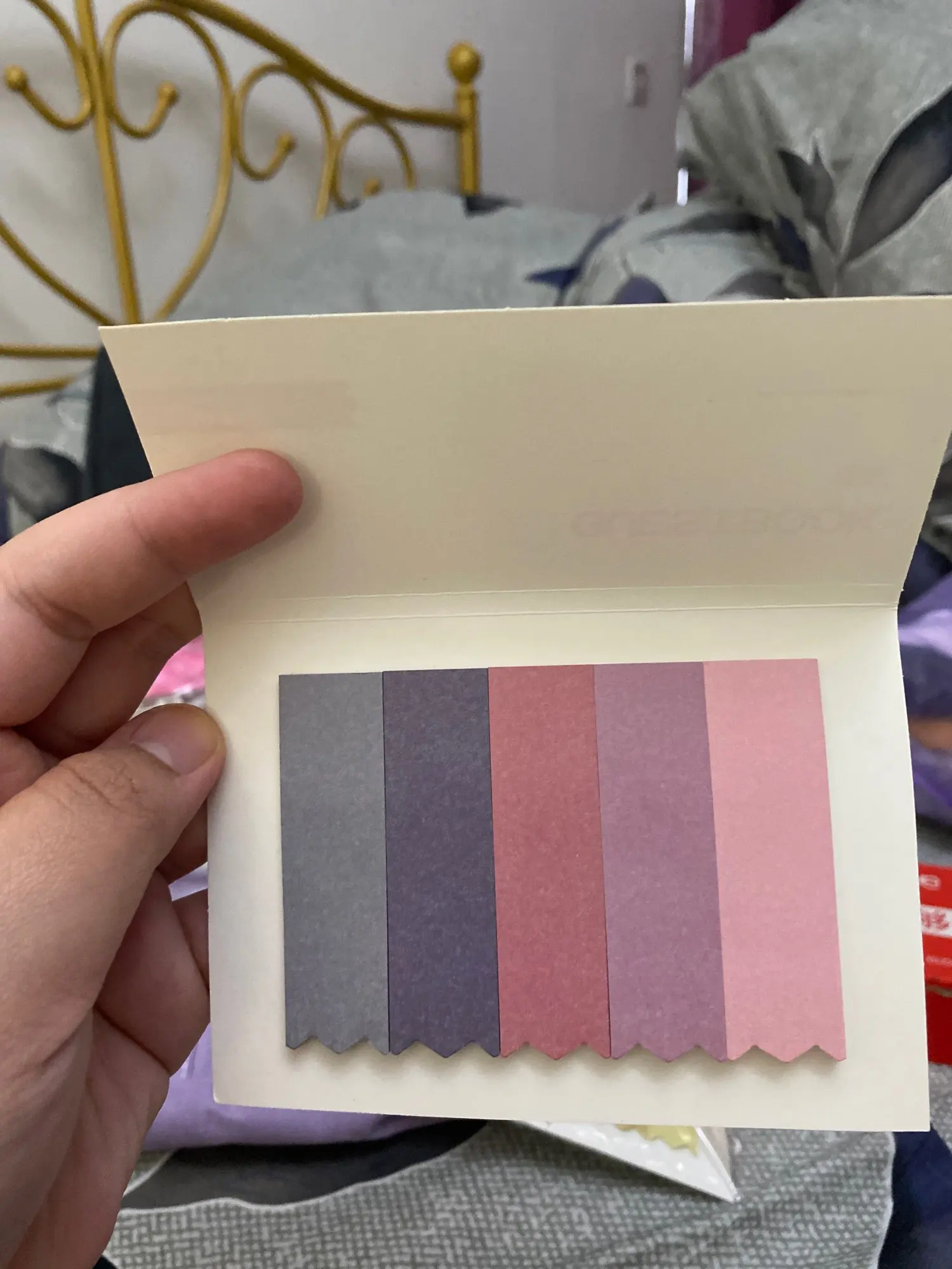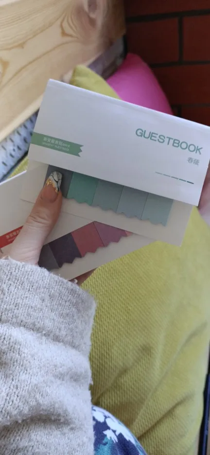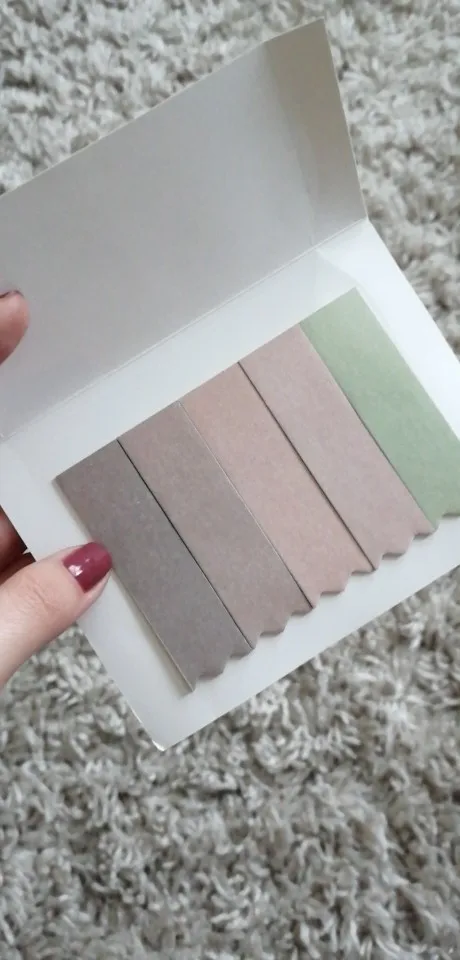 Миленькие бумажные закладки, клейкая часть занимает половину листочка, хватает чтобы он был виден из тетради + пометки на нём. Обратная сторона белая, не цветная. Моя камера немного искажает цвета, в реальности они приятного цвета, но всё же последние два цвета более блёклые, чем на промо-фото. Спасибо продавцу, продлил срок защиты заказа, товар приехал буквально через несколько дней после этого.
