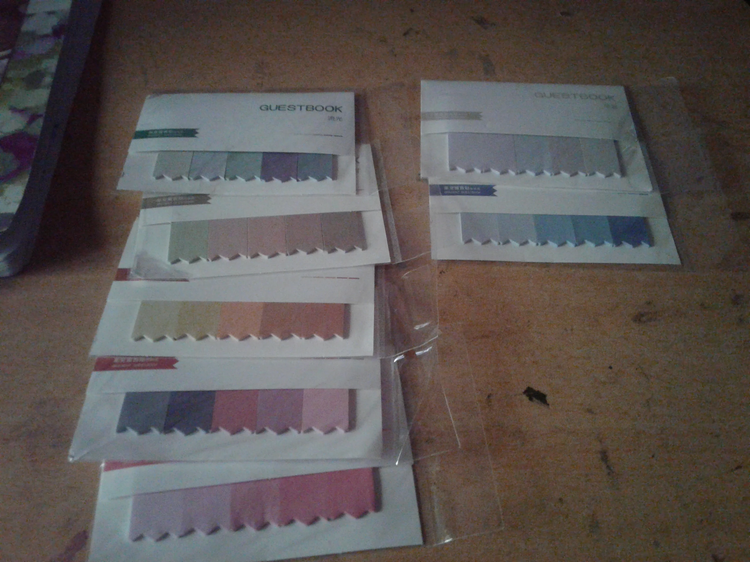 Продукт пришел довольно быстро, и он выглядит мило и функционально! Единственное, что нужно знать, это то, что цвета немного менее яркие, чем на картинке, и маленькие «блоки» заметок не очень хорошо прилипают к маленькой книге, в которой они входят. Я только что использовал небольшой Скотч на спине, чтобы они остались там :) в целом очень довольны!