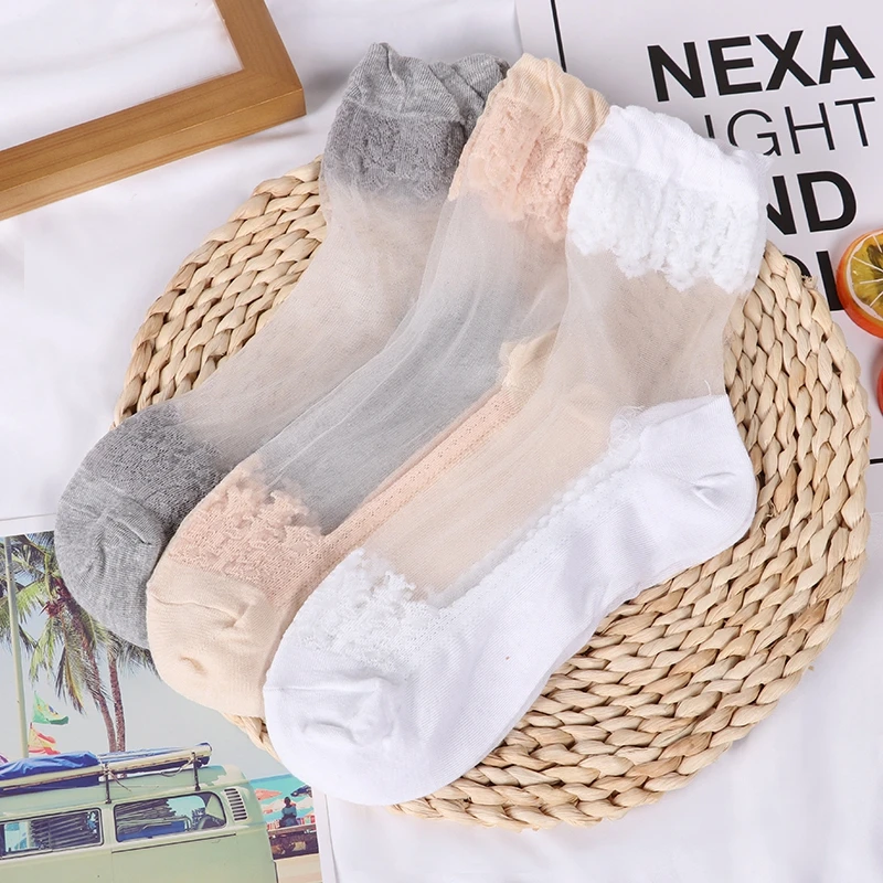 Fast shipped. Socks are quite “thick” compared to some other transparent socks, so these socks have better quality. I bought these kind of socks before and I think they are very pretty and I have them for a year now and I can still wear them. So they are worth the money. I recommend this seller/purchase! Thank you seller!