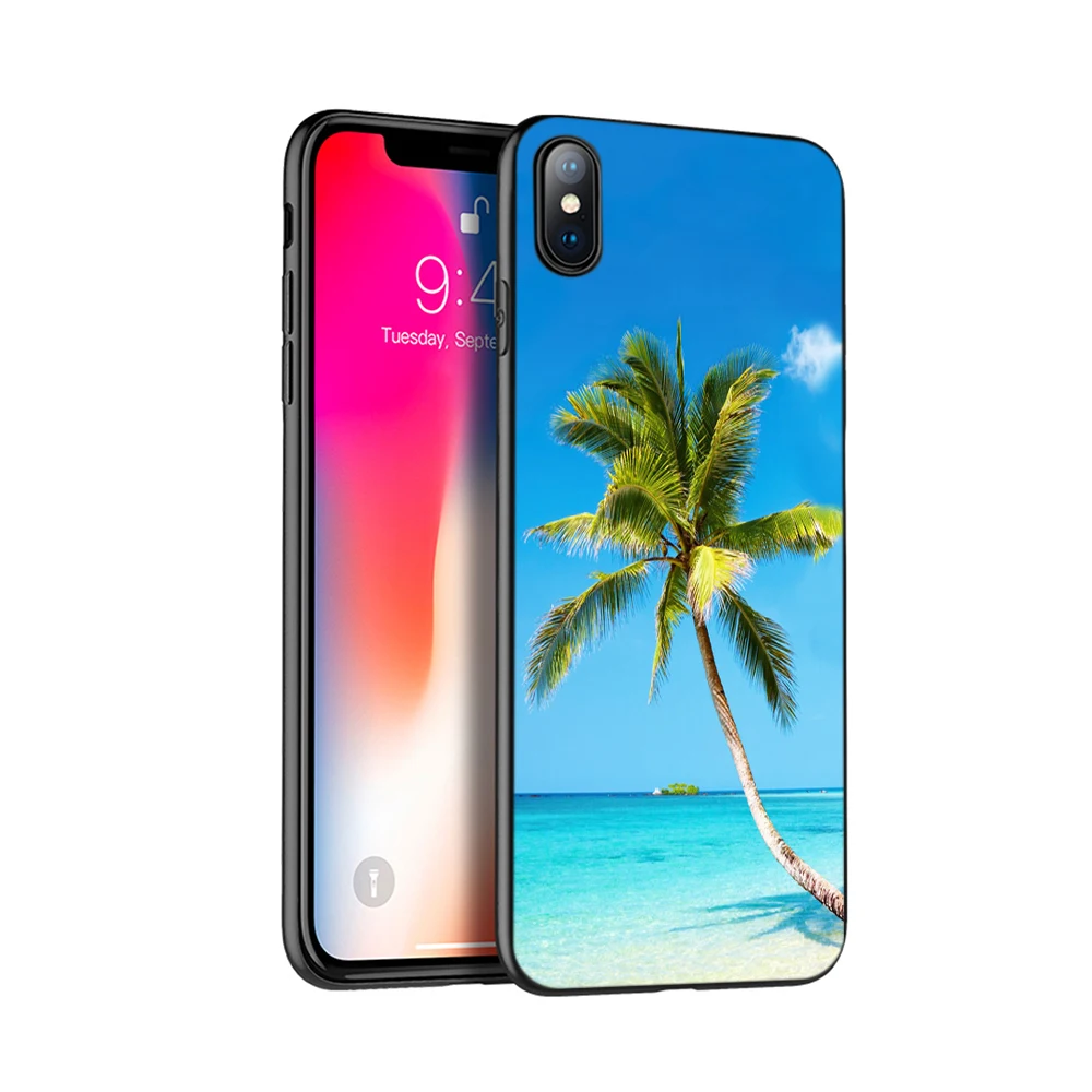 Черный чехол из ТПУ для iphone 5 5s SE 2020 6 6s 7 8 plus x 10 XR XS 11 pro MAX, чехол, летняя пляжная сцена на закате на море, Пальма