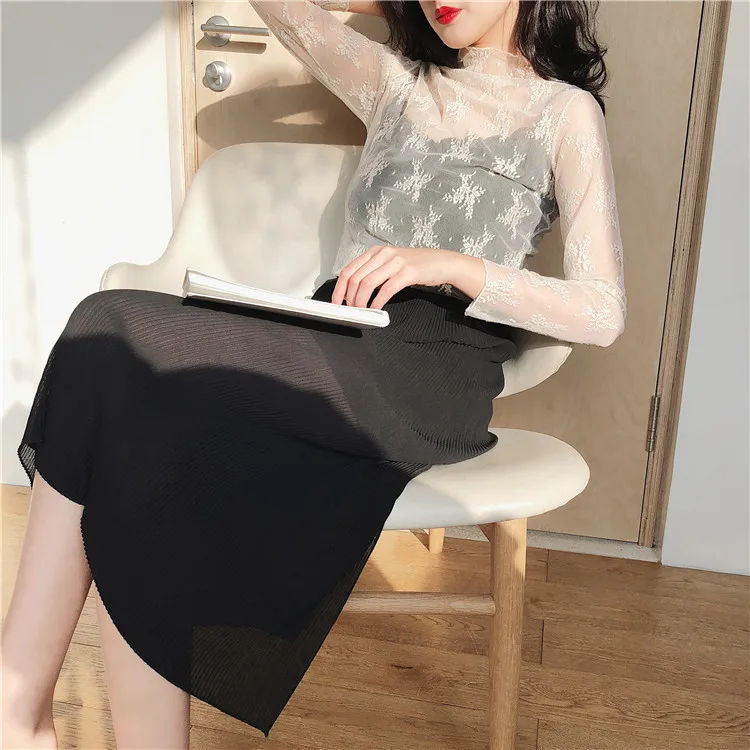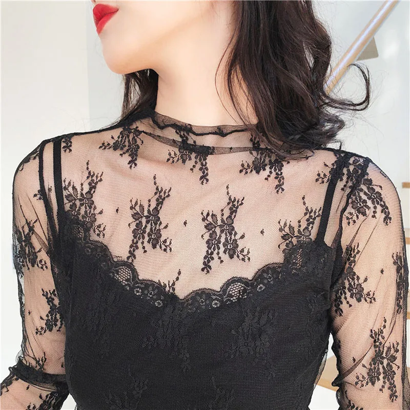 Женские кружевные блузки с цветочной вышивкой, летние женские топы, сексуальные сетчатые блузки, прозрачная элегантная Прозрачная черная рубашка, сексуальная