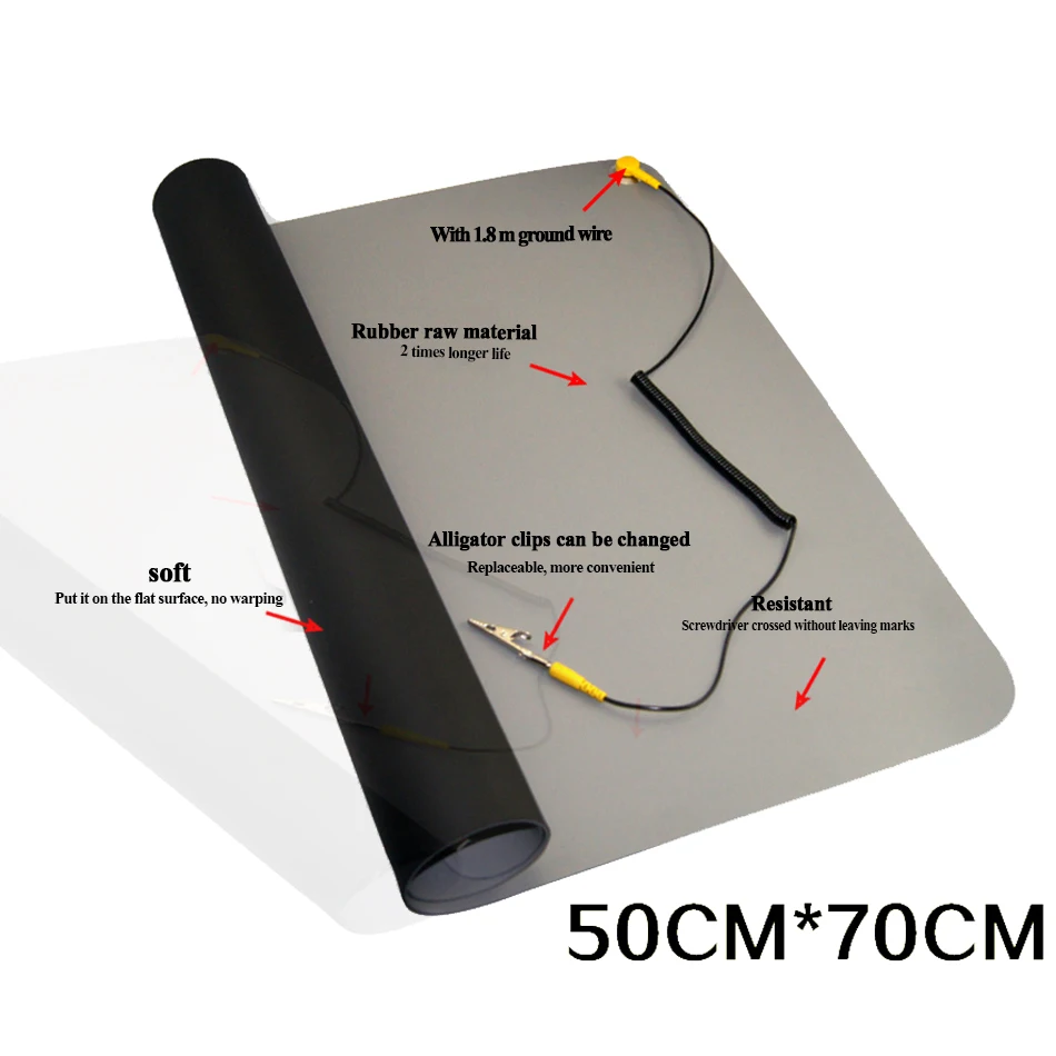 ESD Антистатическая большая настольная подставка платформа для обслуживания заземление провод ESD для ремонта рабочие коврики 700x500 мм