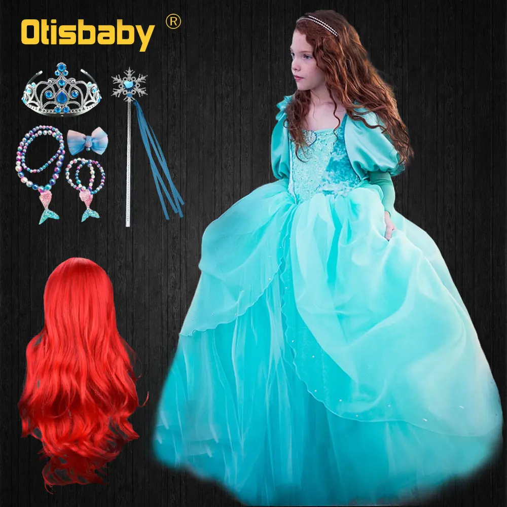 Новый костюм Русалочки для дня рождения детское рождественское платье принцессы Ариэль элегантное зеленое платье с длинными рукавами для выпускного вечера