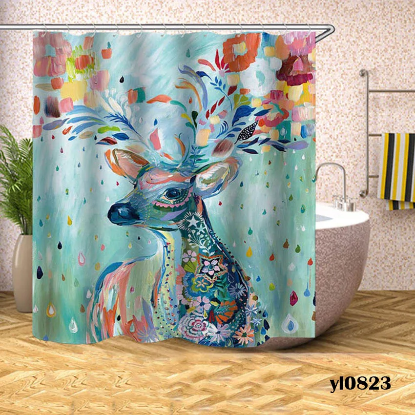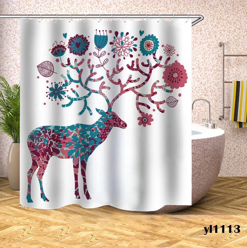 Занавески для душа с оленем, водонепроницаемые занавески для ванной с животными, большая широкая накидка для ванной, 12 шт., крючки, Rideau De Bain